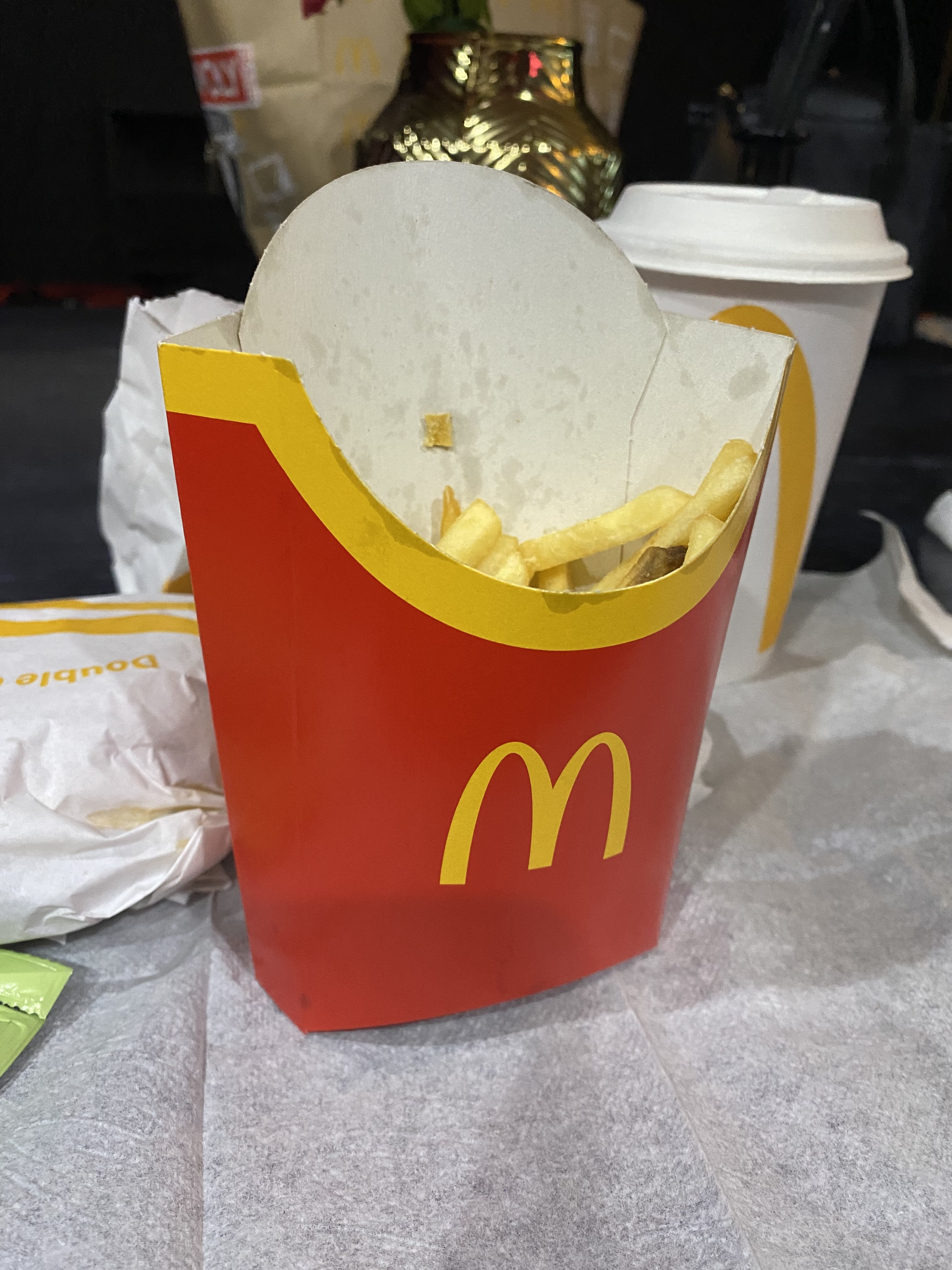 J'ai pris un menu maxi first, ma boîte de frites n'était que de moitié et mon burger écrasé et bien sûr le tout froid. Lorsque leur concurrent arrivera, il n'auront pas besoin de faire grand chose.