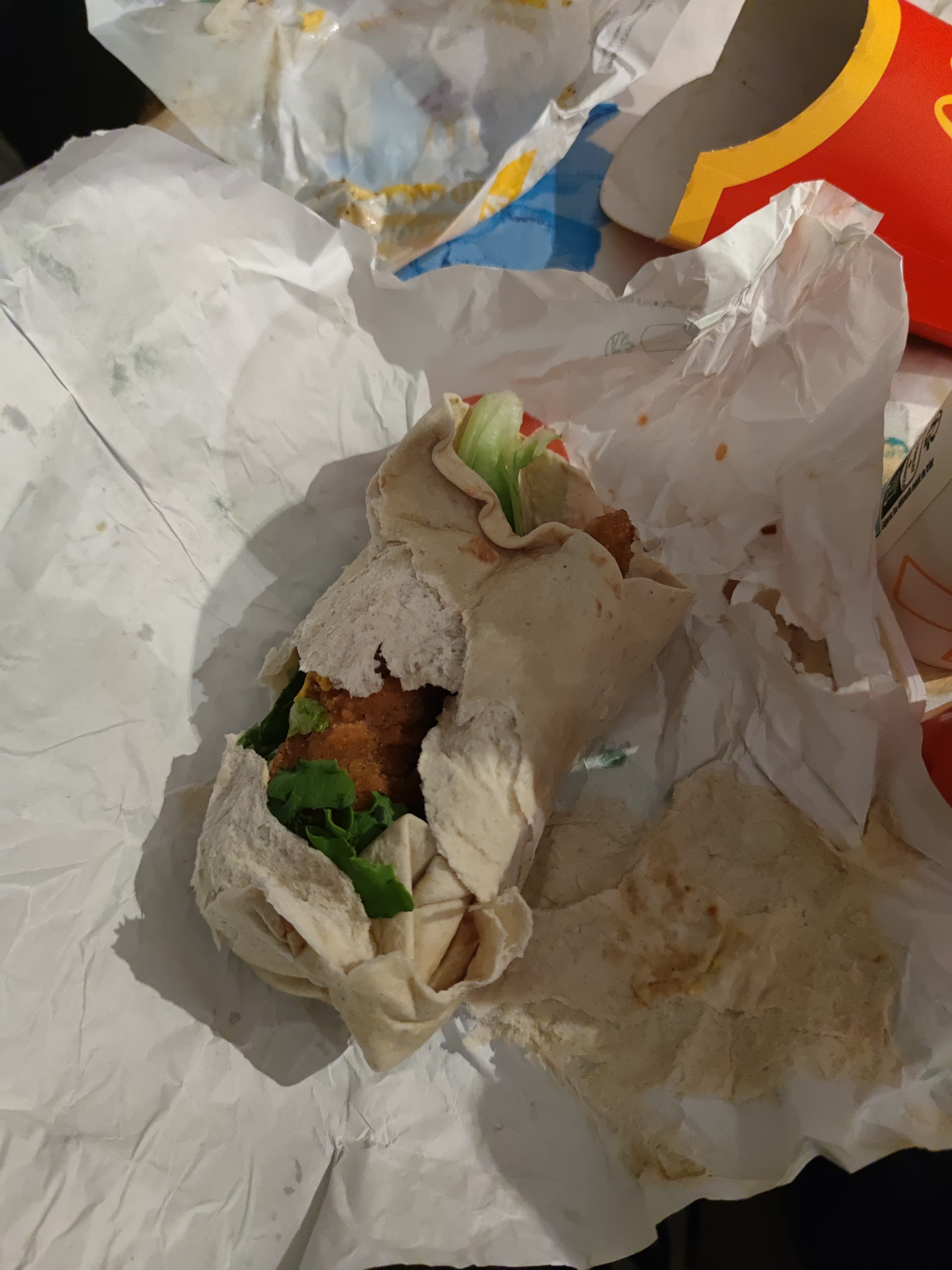 Un peu déçu de la tête du sandwich de mon Mc First poulet en ouvrant l'emballage 😯