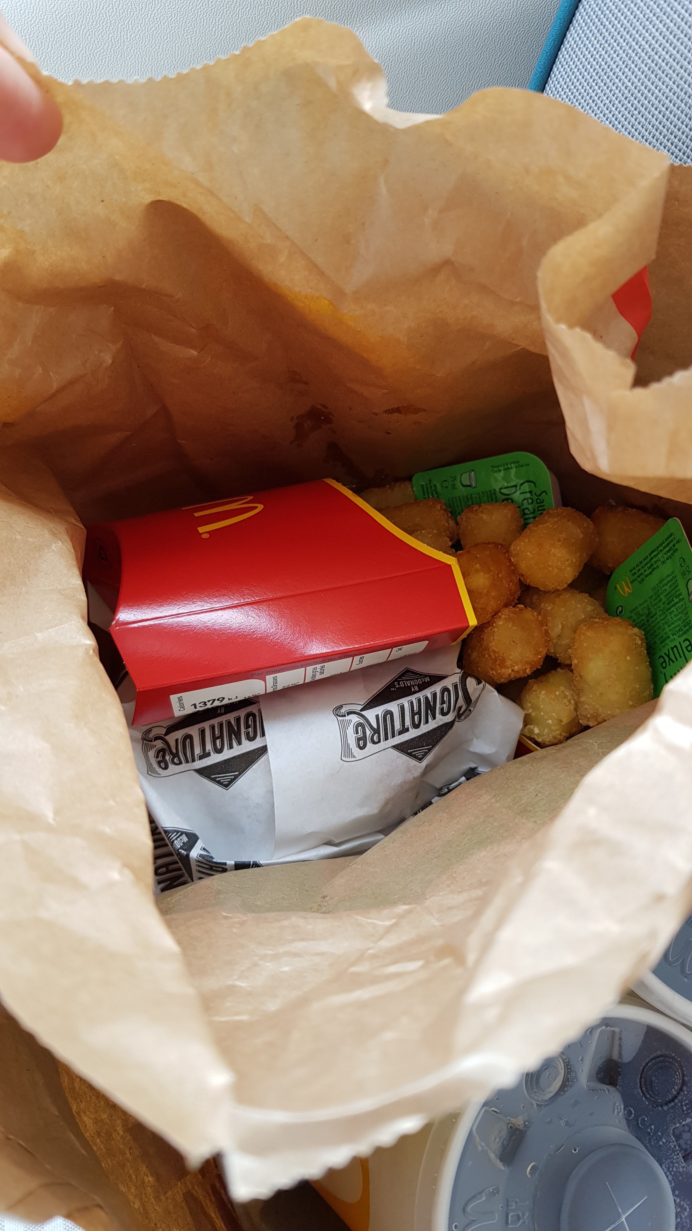 Une commande à emporter où il manque les frites du happymeal, les sauces des nuggets, et des glaces peu fourni. J’imagine que fermer une boîte happy meal avec juste un burger dedans n’avait rien de choquant pour le préparateur. Faire encore un aller-retour pour des frites et des sauces ce n’est pas envisageable. Si on ne peut pas faire confiance au restaurant pour fournir une commande complète, je ne peux que déconseiller d’y aller.