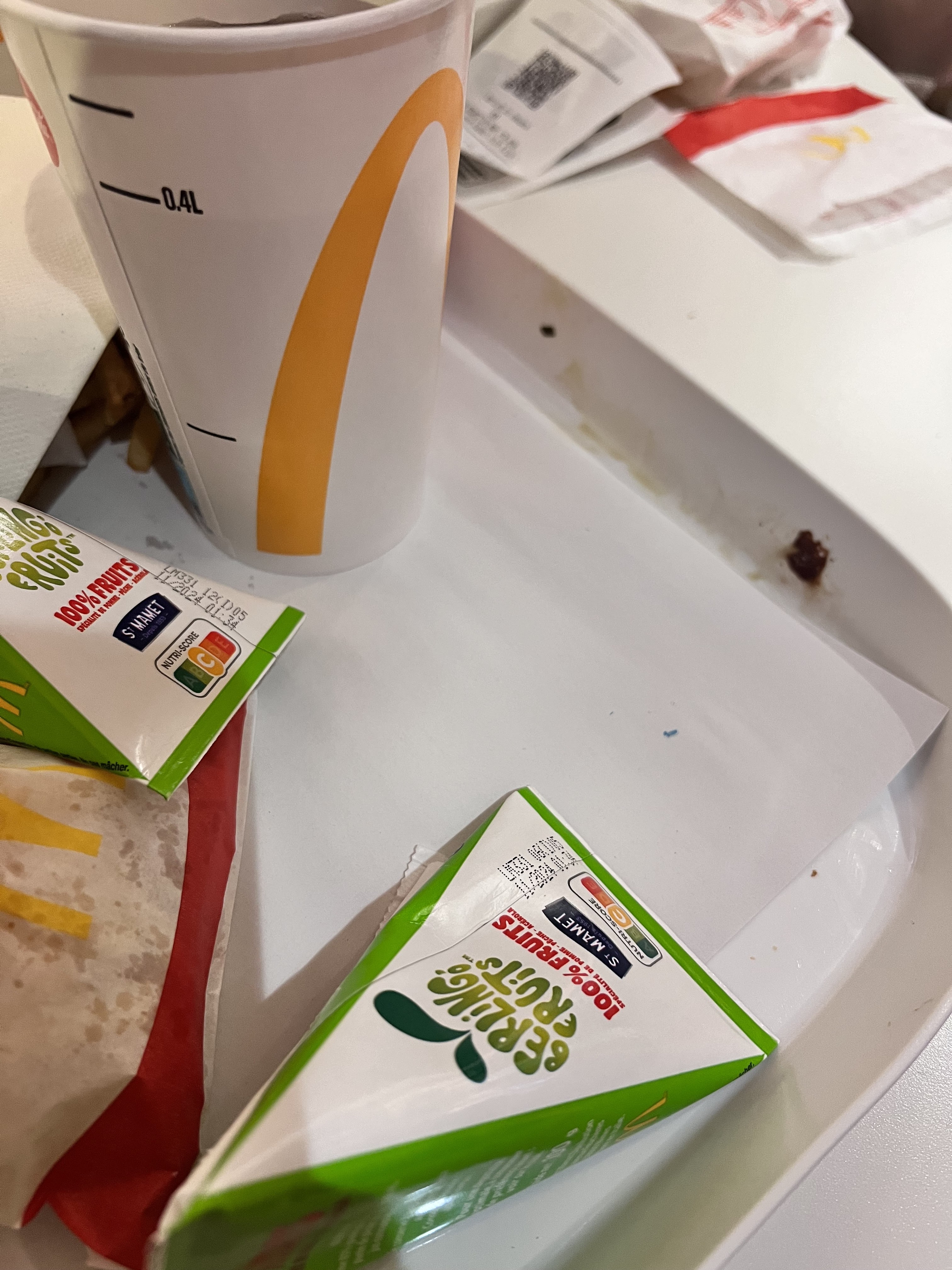 Quand tu commandes un happy meal nuggets potatoes Coca compote et que le coca est hyper clair et sans goût On paye un coca pas de l'eau gazeuse. Une honte. 😡😡😡