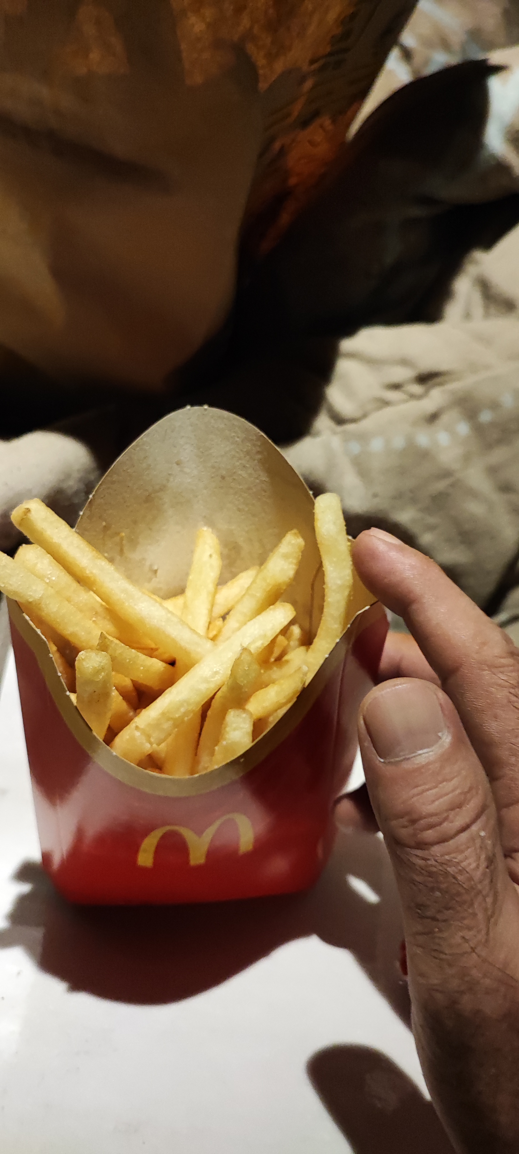 Bonjour, J’ai pris un menu maxi Best Of avec un big tasty un grand coca et les frite double fromage dans la boîte de frite il y avais autant de frite que d’employer qui on de l’avenir chez vous je pense que au prix où vous pratiquer les menu c’est pas les action dans la pomme de terre qui vont vous faire couler ou c’est un nouveau jeux de cache version frite