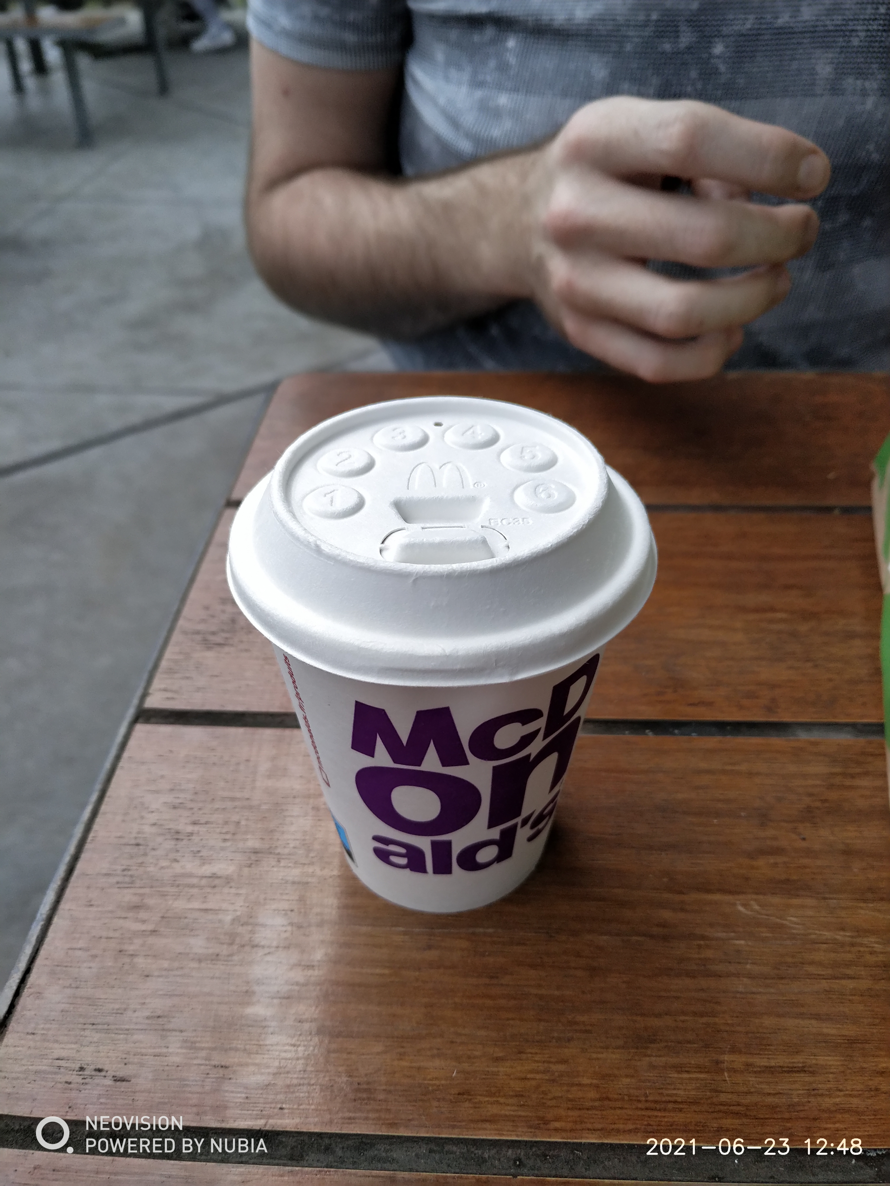 Commande respecté mais vous auriez comment pu voir que le couvercle ne tient pas sur le gobelet de coca. Heureusement que vous ne l'êtes pas reversé dessus.. puisque ça été mon cas ! Merci !