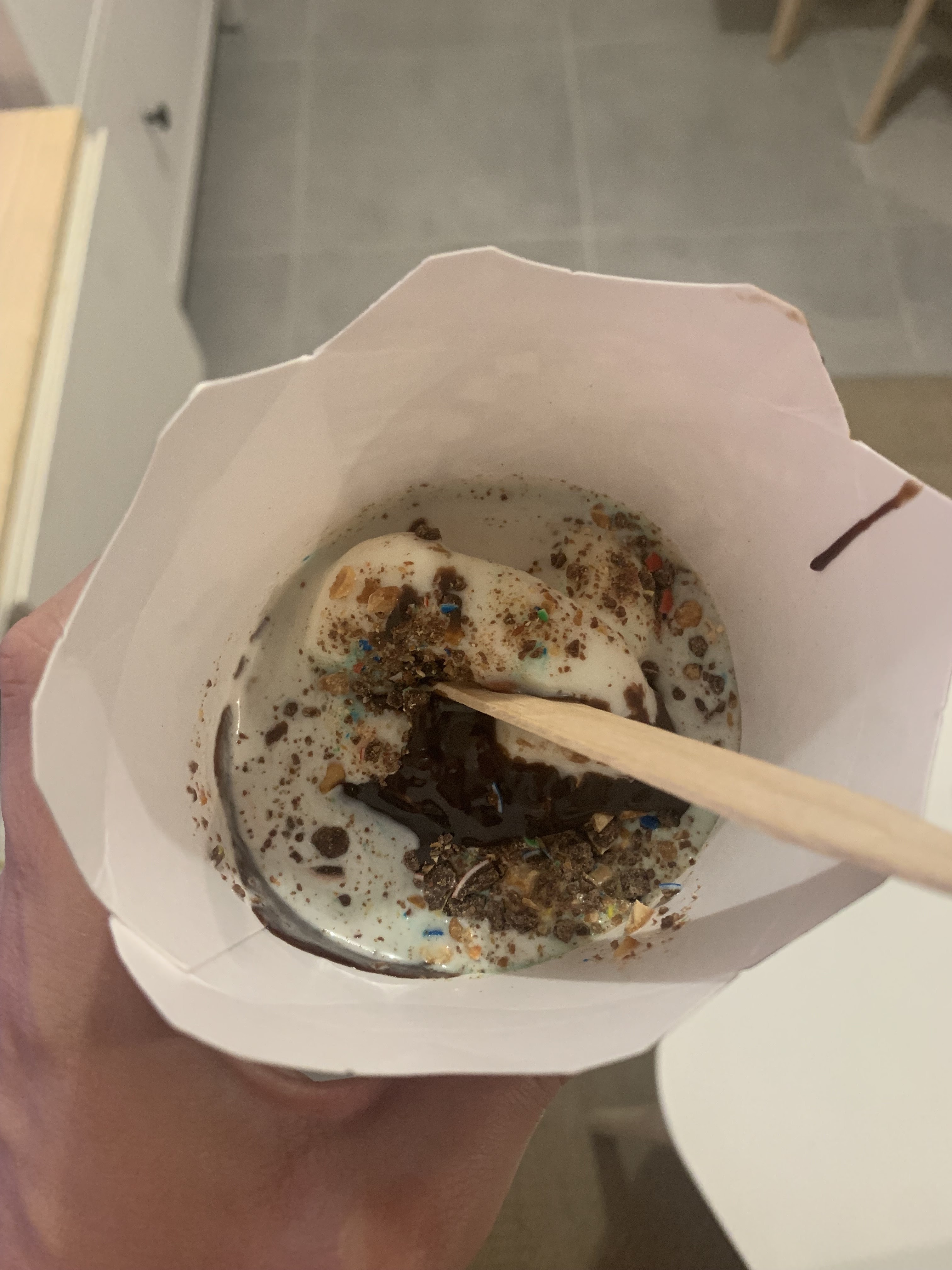 J'ai été très déçu par l'organisation et le temps d'attente ( trop long) 🥵 Je commande à la borne un parf choco peanut Je reçois un parf vanille . Je vais voir au comptoir pour leur dire qu'il ce sont trompés . Elle me dit que la machine ne fonctionne plus avec le chocolat . Pas sérieux du tout . Surtout modifier le sur la borne de commande.