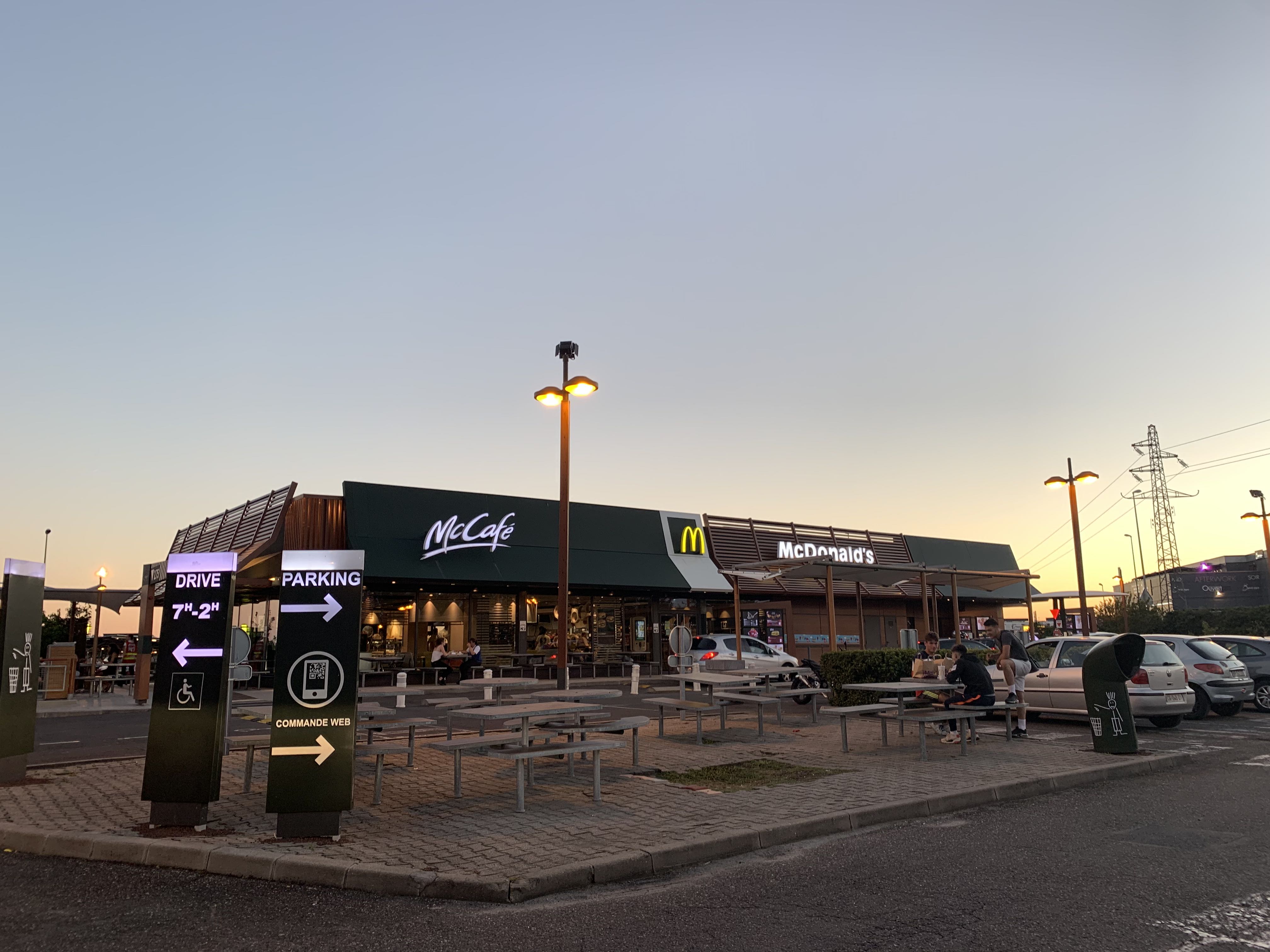 Quand vous arrivez à ce Macdo, les portes ouvrent automatiquement. De plus, il dispose d’une grande terrasse où vous pouvez pleinement profiter en été. L’espace à l’intérieur de ce macdo est grand. Néanmoins, elle ne dispose que de deux bornes et parfois, il faut attendre un peu de temps avant de commander. Cependant, cela se rattrape avec l’équipe qui est accueillante, et le peu d’attente que j’ai eu avant de recevoir mon plateau. Le point négatif est que le système de chevalet ne fonctionne pas en ce moment, donc les employés sont perdus et doivent appeler le numéro de la commande pour vous servir, mais je suis sûr que cela va être réparé rapidement. C’est pour ces raisons que je ne peux pas mettre cinq étoiles. Le point positif, c’est qu’il fait partie des premiers macdo à mettre en place le système proposé par la marque. Certains macdo aux alentours ne le proposent pas.