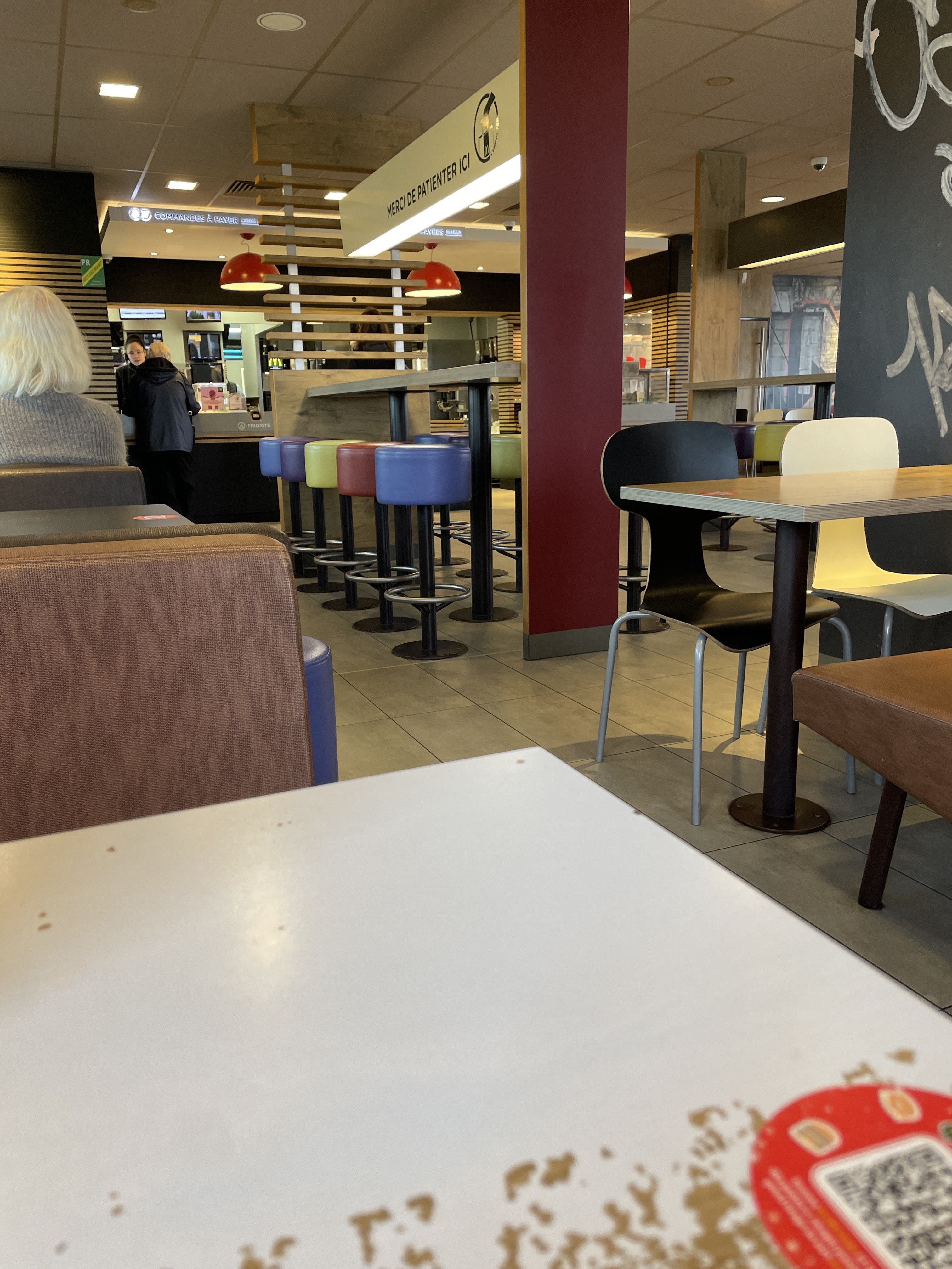 Nous venons manger dans ce Mcdo chaque semaine. A chaque fois, il y a un problème avec la commande qui arrive à table (il manque les frites, manque les sauces, manque le jouet ou le livre du Happy métal…) bon bref, à chaque fois il faut se relever pour réclamer ce qui manque. Les jeunes embauchés sont peu aimables. A peine bonjour. Pas de sourires. Les tables sont souvent sales, et toilettes sont très sales . Et pourtant nous arrivons toujours de bonne heure, bien avant le rush du midi. Je n’ose imaginer l’état des toilettes vers 14h. Aujourd’hui ma commande était complète 🎉…mais les frites étaient froides ☹️.