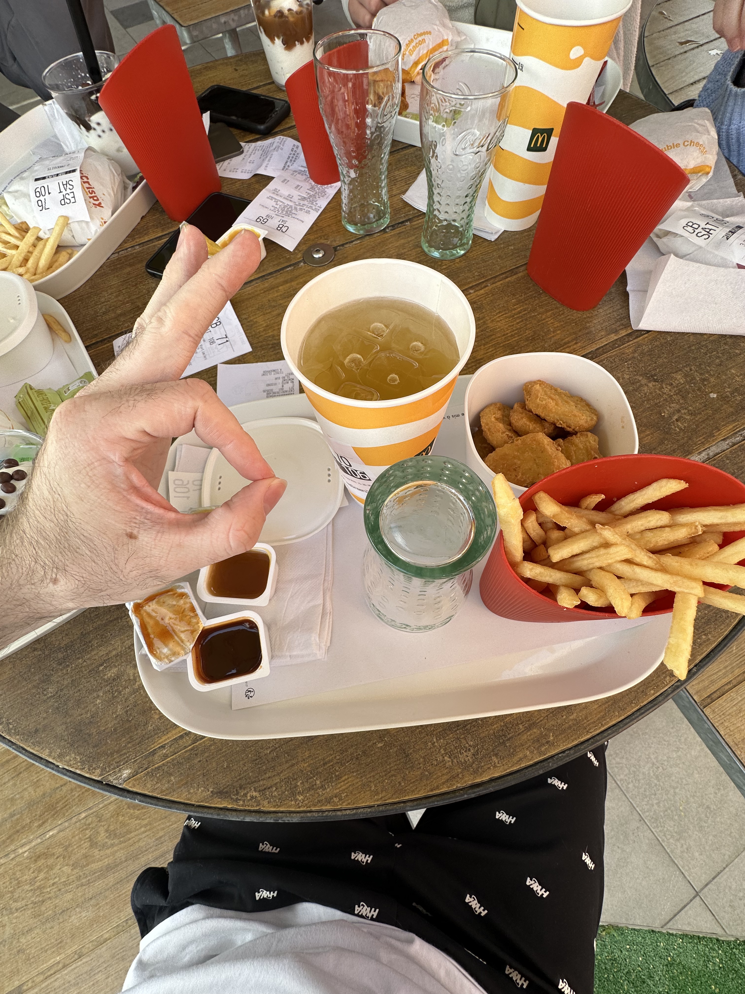 Ca faisait des années que je n'étais pas venue a ce mc do, j'ai trouvé le lieu un peu froid pour un soir de semaine 20h a la débauche, et franchement,quand ce n'est pas explique,c'est pas évident les bornes, et personne pote vous renseigner, il m'a fallu attendre plus de 5 minutes pour voir qqn qui me dise comment enfin, rentrer ce fichu chiffre du chevalet !!comment j'invente qu'il faut mettre le 0 devant le chiffre du chevalet qd je viens 1 fois tous les 5 ans 🤣sinon très bizarre le verre et le cornet de frites en dur ,ah, ce n'est plus l'ambiance d'autrefois ...mais un grand merci au jeu e qui nous a servi a table ,ça non plus pas habituée a McDo , du boulot en plus pour lui mais il était très gentil 👌
