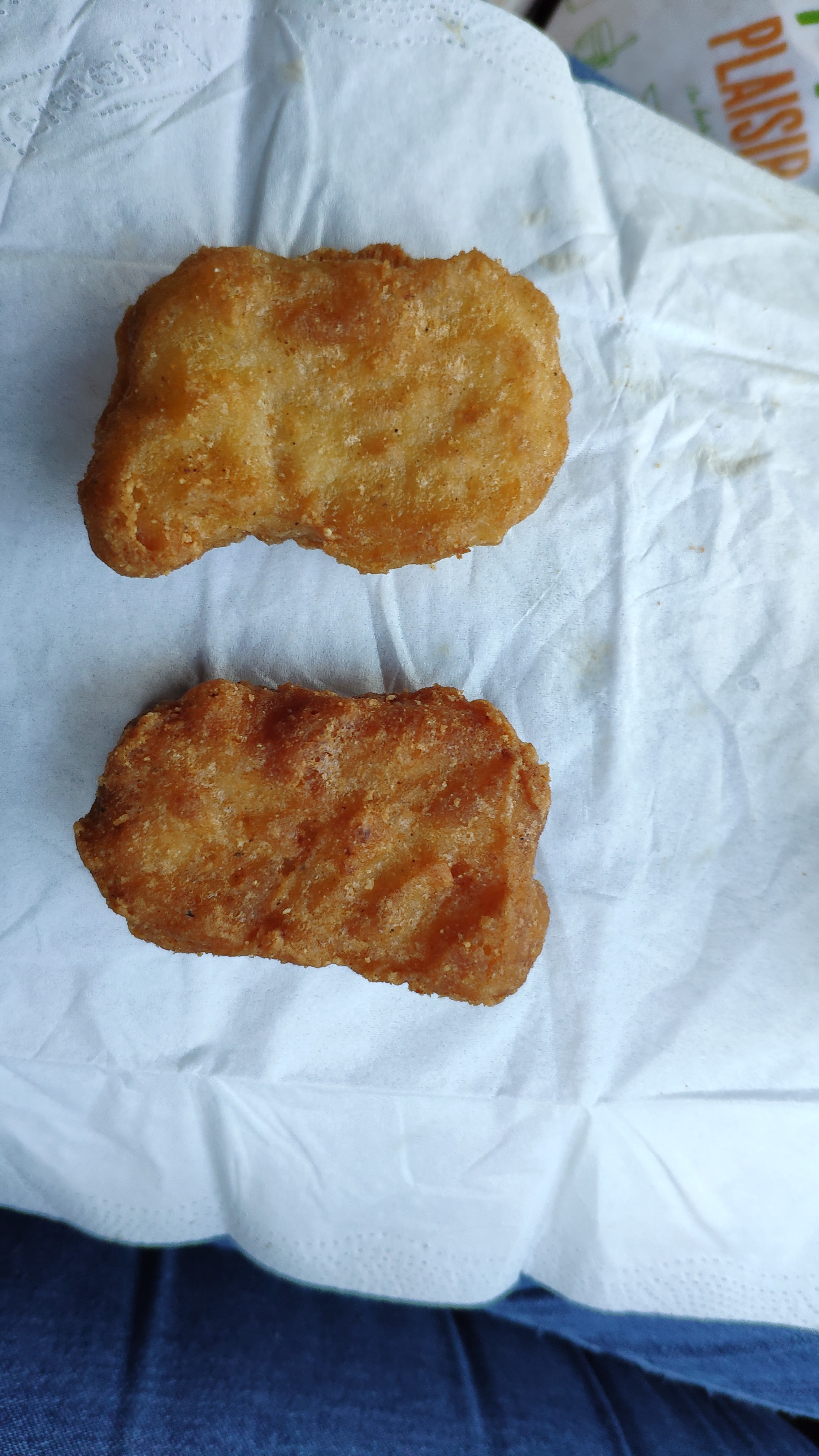 Encore un oubli c'est limite une habitude je pense ! Les nuggets les 3/4 sont des nuggets recuits (voir la photo pour la différence) donc forcément dur et mauvais. Le jouet fille alors que j'avais demandé un jouet garçon, les enfants sont ravis ! Frites froides, croque McDo idem. Et bien-sûr on a attendu la commande bien longtemps 👌🏻