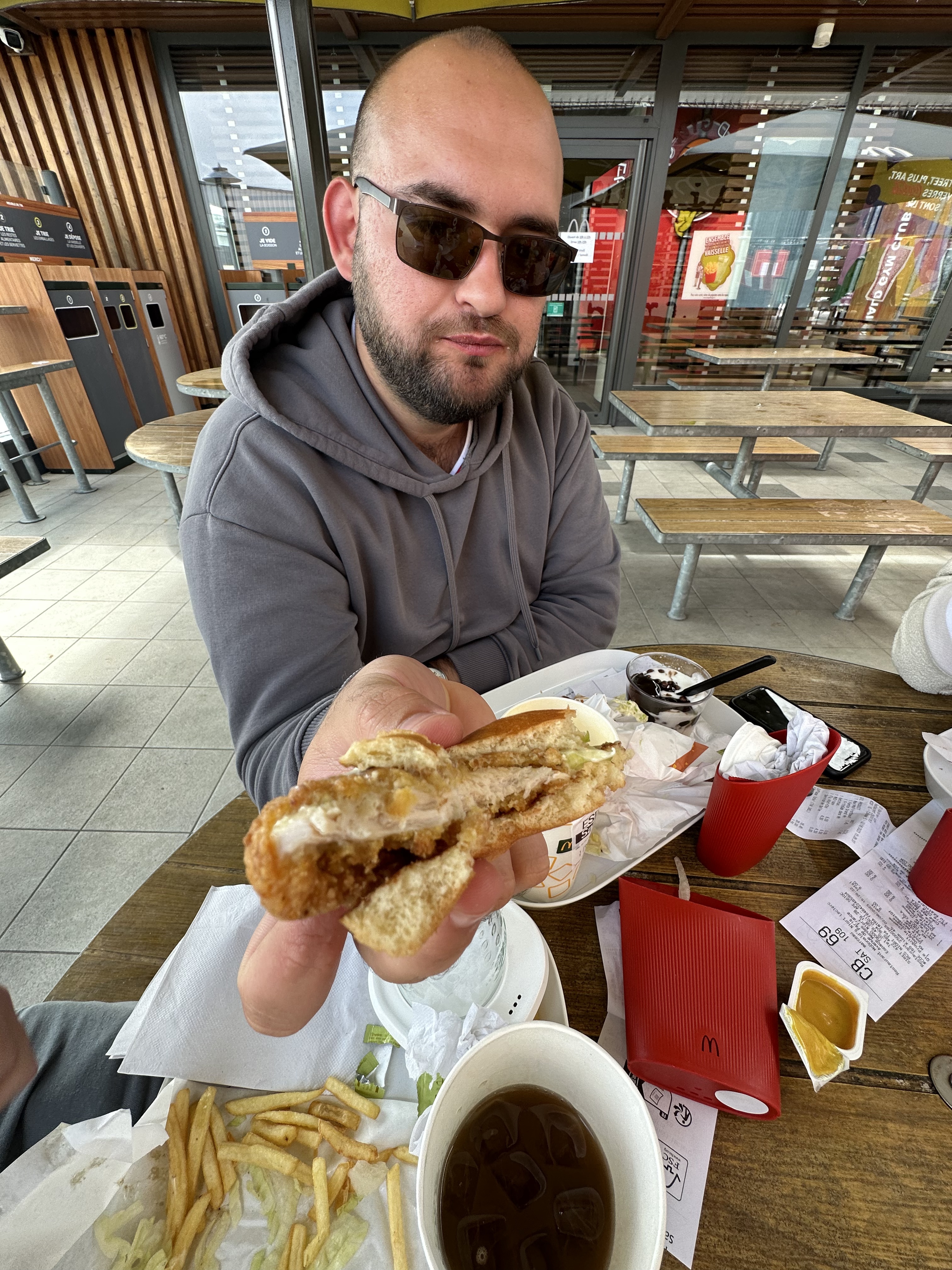 Une attente interminable. Tout ça pour avoir un double cheese bacon avec un seul steak et sans bacon. Un big tasty demandé sans tomate, avec des tomates. Et un egg macmuffin bacon. Sans bacon. Mais heureusement ils était monter à l’arrache comme on en a l’habitude. Les frites étaient pas ouf alors que je me souvenait en avoir mangé des bien plus bonnes chez macdo Honnêtement je veux bien qu’il y ai des moments où c’est plus compliqué que d’autre Mais lire sur un papier ça ne m’a pas l’air bien compliqué pour au moins donner une commande CORRECTE aux clients. Au delà de ça, les clients sur places étaient inhumain Ne jetant pas leurs déchet, faisant tomber de la nourriture au sol et ne faisant comme si de rien était. Aucun respect et je vous souhaite bien du courage pour ça.