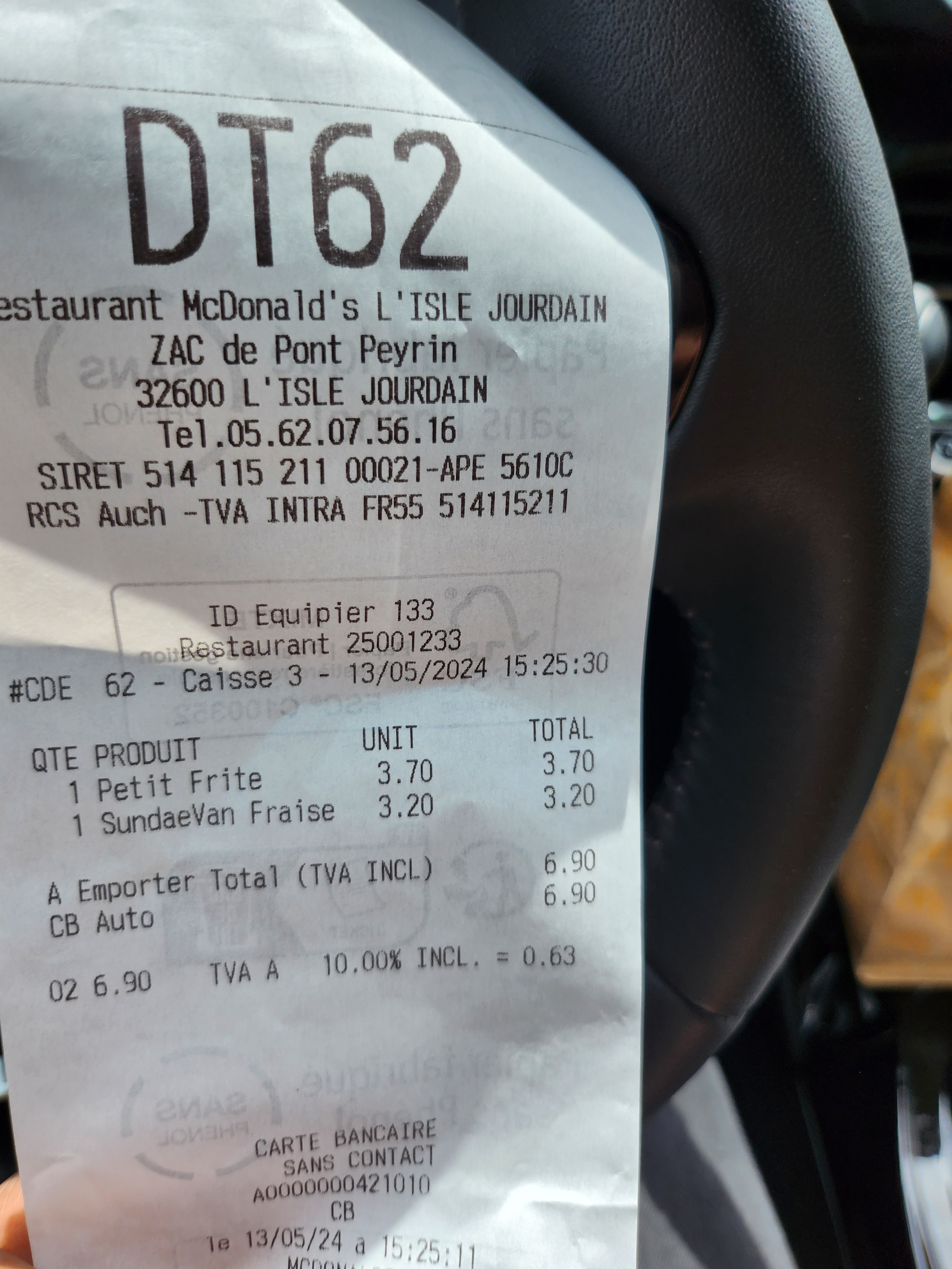 Commande sur internet. Je vais chercher et je vérifie les sauces, absentes, je vais réclamer (bon la base chez mc do). Mais là en rentrant je m'aperçois qu'il n'y a pas mes potatoes bien facturée... Ça s'appelle du vol...