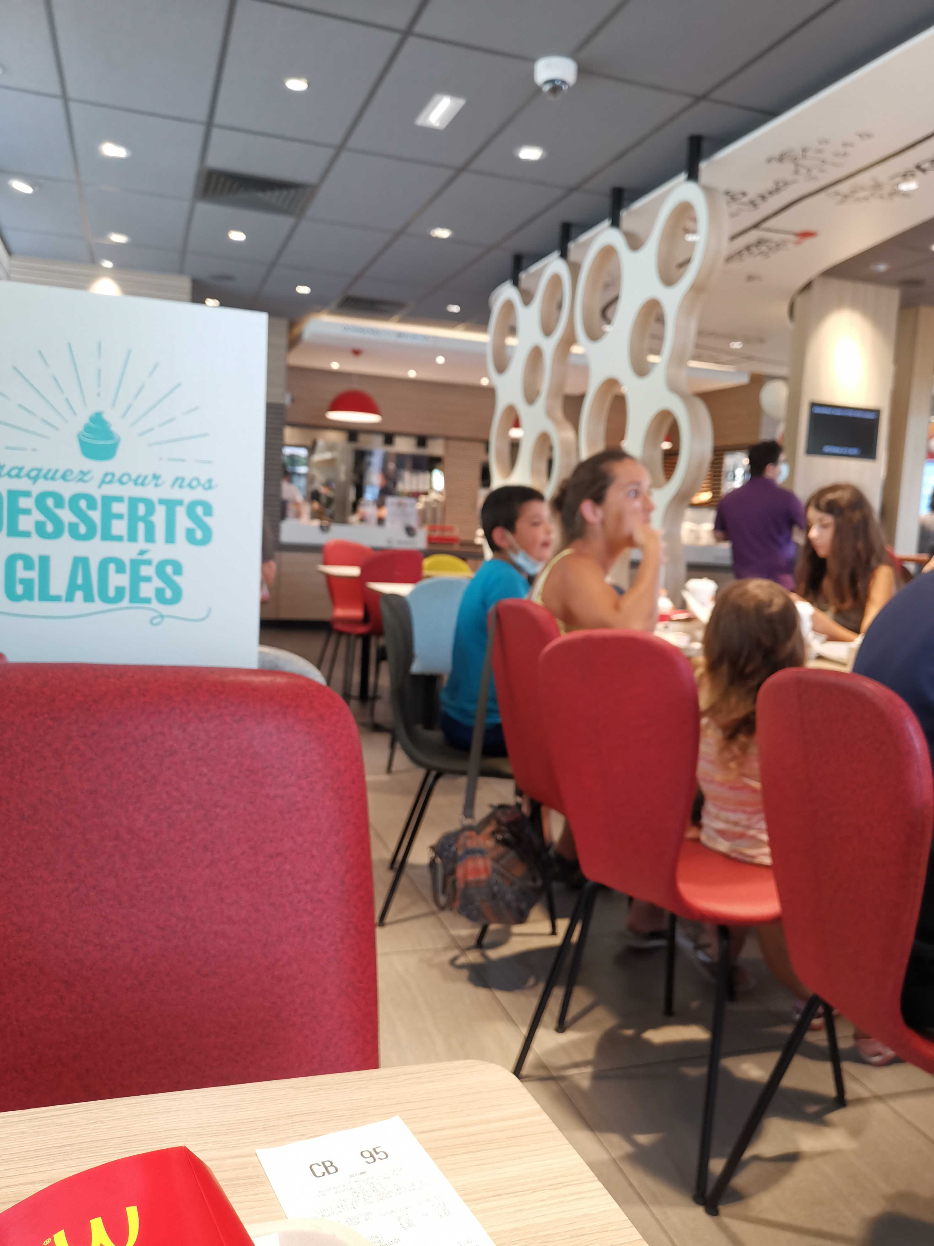 On c'est arrêté ici après plusieurs de route. Qu'elle surprise 😲 L'équipe au petits soins. Surtout la responsable (il me semble) qui a était adorable du début à la fin. Qui es tout de suite venu pour me faire chauffer le repas de mon bébé ma apportée une cuillère, un bavoir.. Une table avec des activités, des coloriages, des crayons à dispo et on a pu repartir avec .. Changement du jeux de société pour un autre .. Vraiment je me suis sentie choyer et surtout pour mes enfants sa fait chaud au cœur ❤️ Je met 5 étoiles 🌟 🌟 🌟 🌟 🌟 C'est la première fois que je suis si bien accueilli pourtant j'en vois des mc do.. Merci à vous pour votre gentillesse.