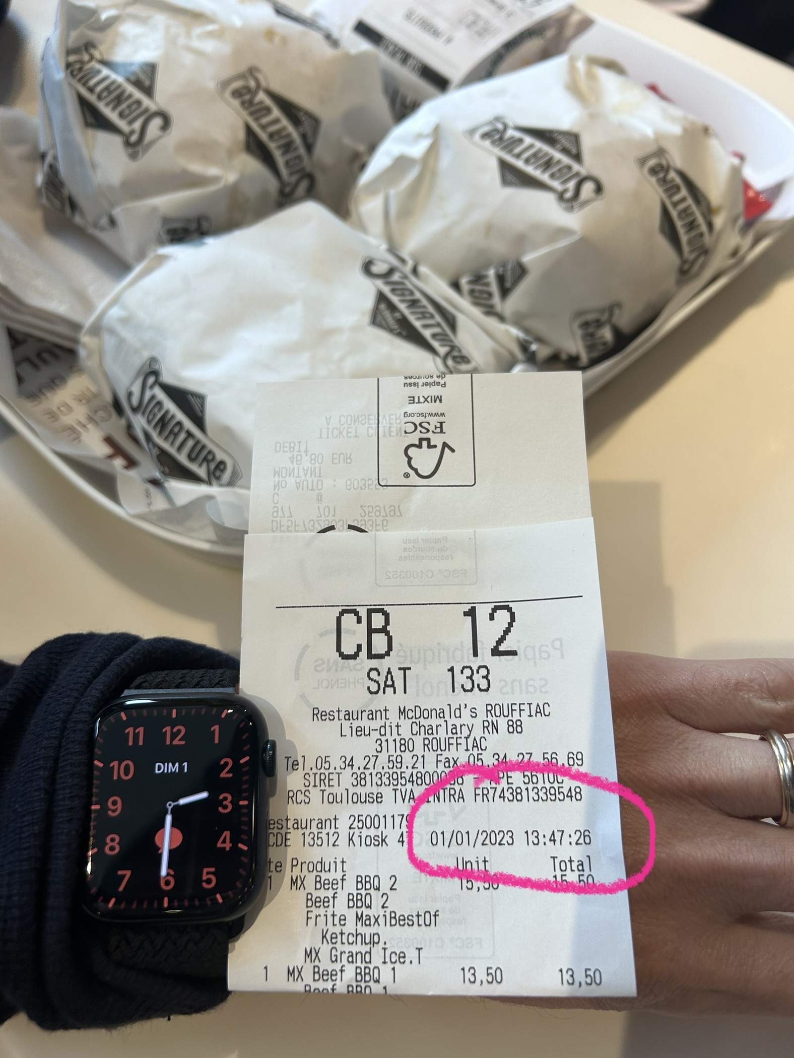 McDo Rouffiac à encore une fois oublié les frites dans ma commande de trois menus , peut-être trop de monde ? . ( La raison de mes contrôles, même au comptoir) Le pire, c'est la livraison Uber en scooter , à la réception les boissons renversé et a moitié vide , les sandwichs trempé et pas de frites....grrrrr!!!!!! il faut vraiment , mais vraiment que j'arrête la livraison. Commande du 11/12/2023 Au tarif de 42.20€ + 2.30€ de livraison. Deux étoiles pour mon CBO mouillé Cordialement Phil.