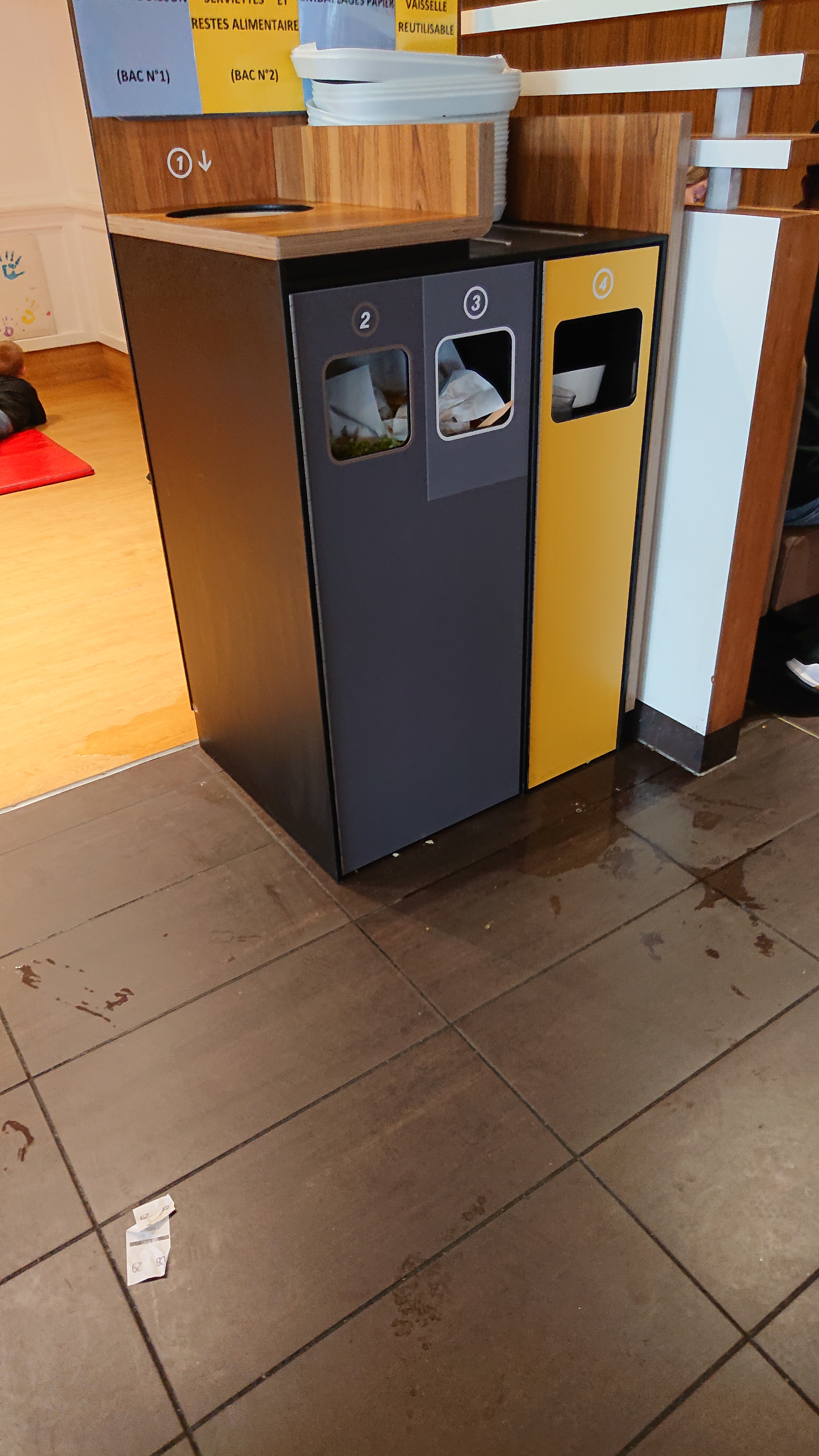 En bonne position pour remporter le prix du pire MacDo de France ! Un sol jonché de frites et de sachets de sauce, les tables pas nettoyées, le sol collant, des mouches dans les toilettes… Une étoile pour le café du mac Café bon et servi dans une tasse propre, et une autre pour l’employée souriante et agréable qui sert en salle.
