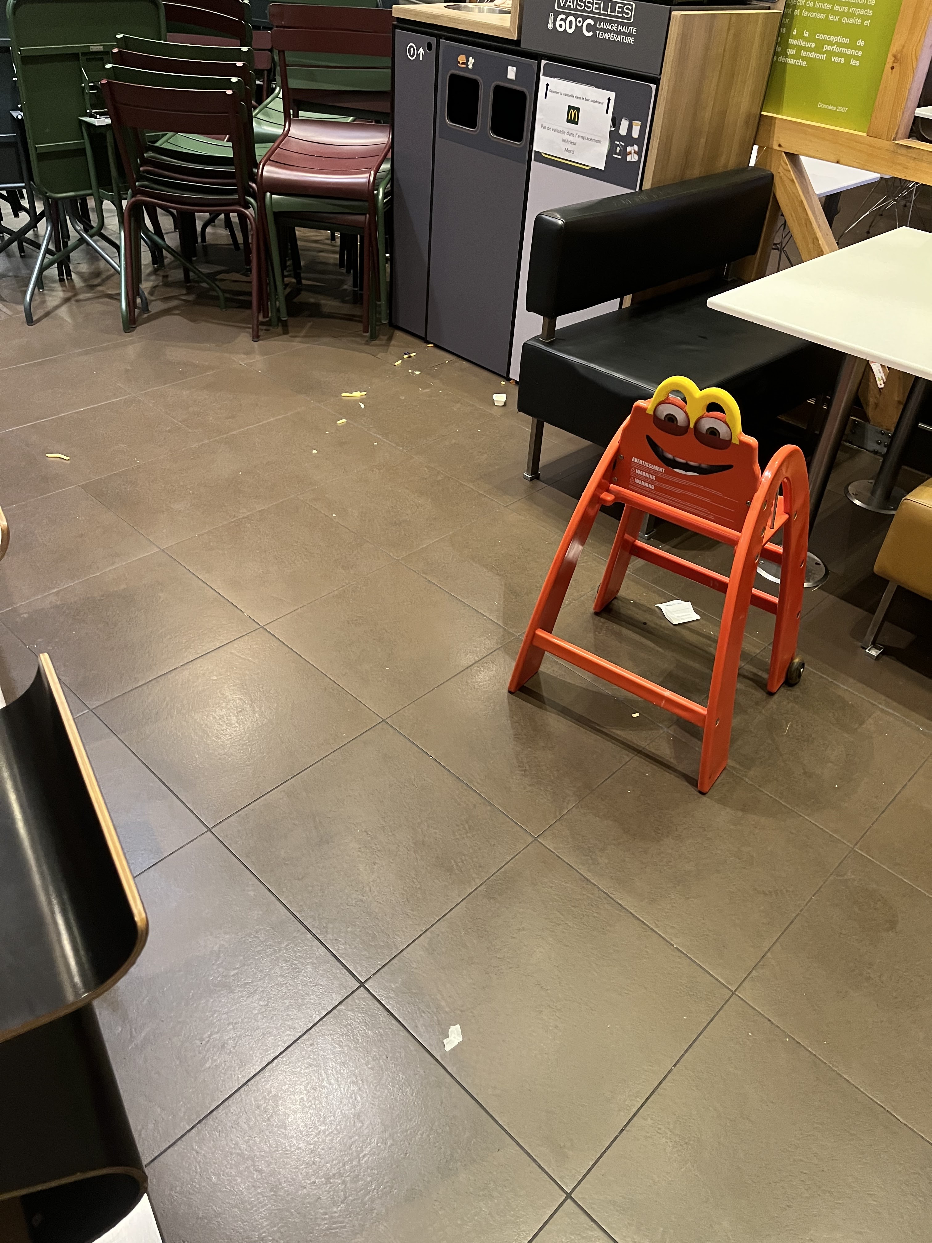 Mc Donald degueulasse autant sur les tables que par terre ,toilettes fermés pour on ne sais quel raison donc impossible de se laver les mains alors qu’on mange des sandwichs . Les règles d’hygiènes ne sont pas aux normes.