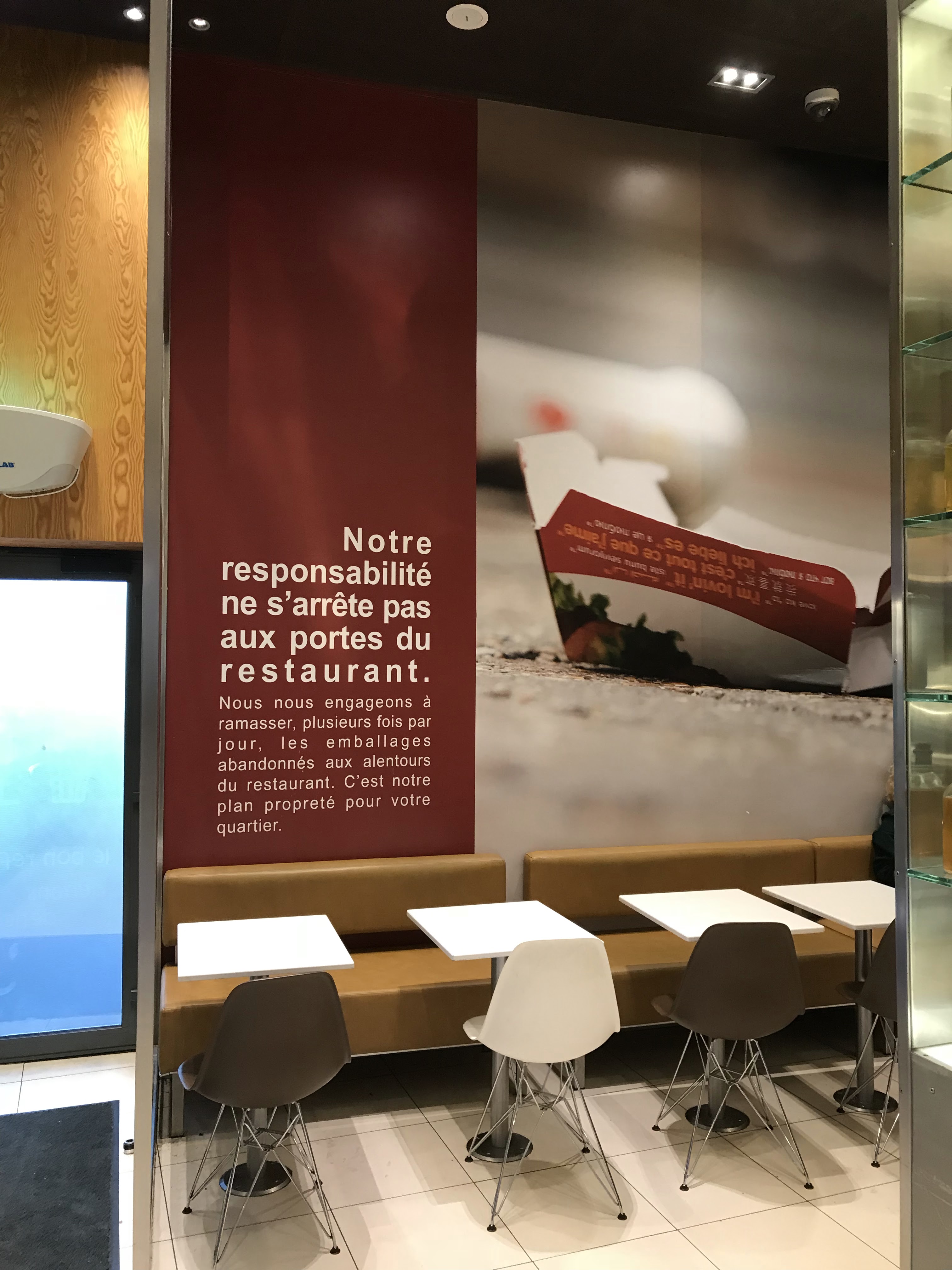 Le lieu est bien,moi ce qui m'inquiète s'est que bientôt il n'y aura plus de steak dans le pain tellement il est de plus en plus fin ,une honte , rien que pour rester moins cher s'est du n'importe quoi . Du coup il vaut mieux manger un bon sandwich en boulangerie, qui est bcp plus rempli avec boisson et dessert pas plus cher que vous .dommage adieu