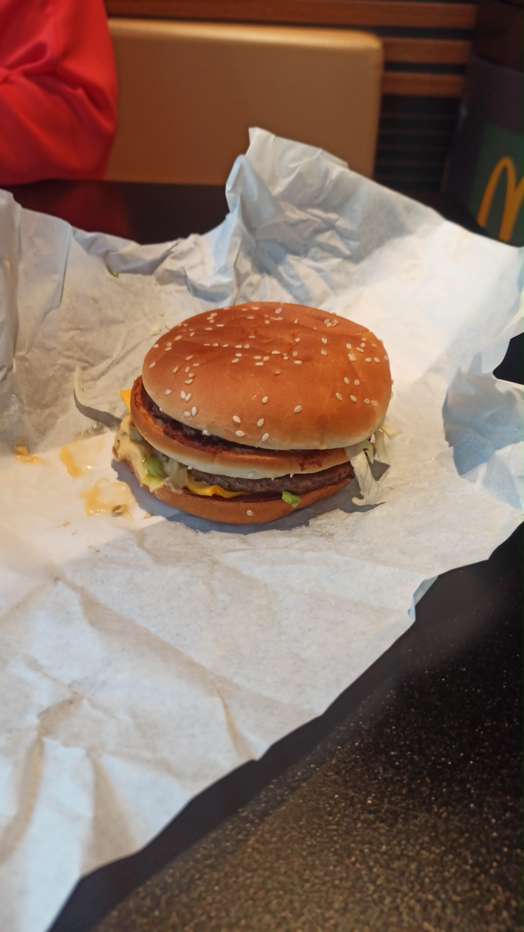 Nourriture tiède presque froide lors du service à table. Table sale non nettoyée. Sandwich et frites moins grands qu'au paravent. Mac Donald a baissé en qualité