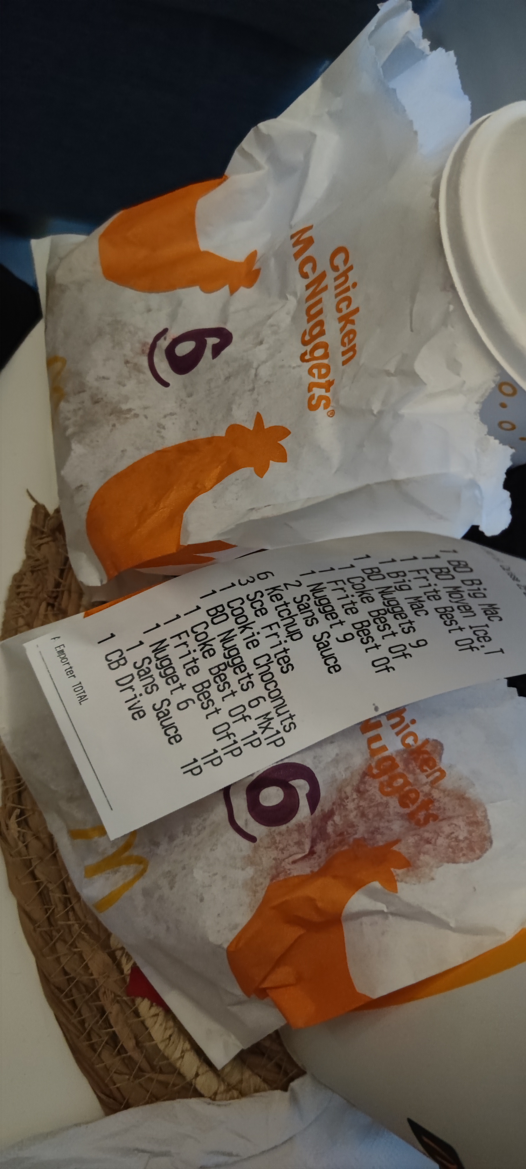 Commande à emporter avec un coca mal fermé et j'ai du coca dans ma voiture!!! Les burgers étaient froid, bref mac do de fenouillet à éviter!