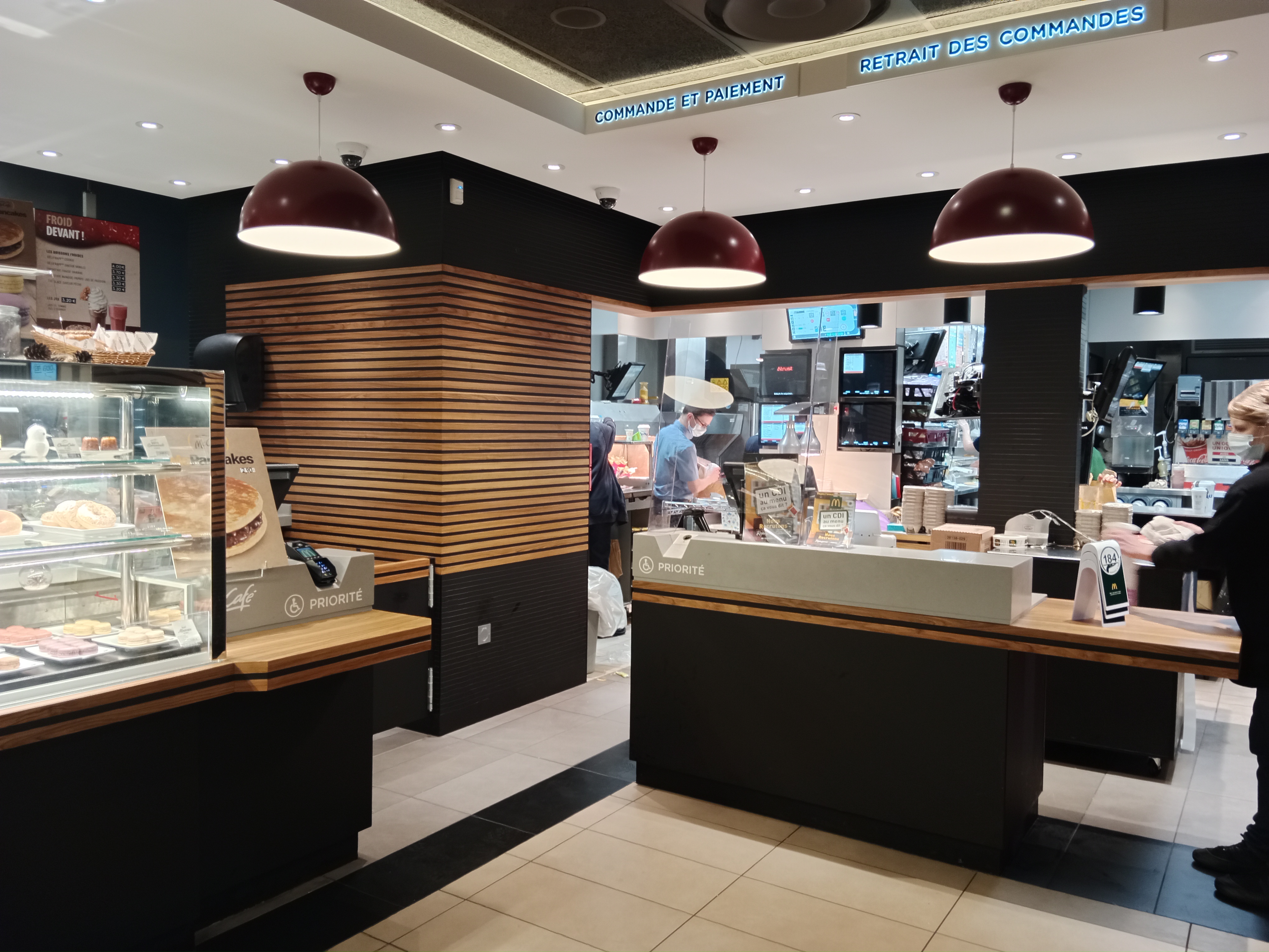 J'y suis allé avec un ami dimanche vers 15h, peu de monde donc agréable. En revanche, plusieurs bornes non fonctionnelles et il y avait de la nourriture partout sur le sol, les tables étaient toutes sales, les banquettes et fauteuils aussi... J'ose à peine décrire dans quel état était l'endroit où l'on jette et trie notre plateau... Une boisson était reversée partout par terre, de la nourriture écrasée et partout autour de cet endroit, le sol était très sale, les vitres n'en parlons pas... Les frites et le burger était froid et comme dans tous les MacDo, tout débordé et coulait ! Nous avons déjeuné à l'extérieur et comme à l'intérieur, c'était sale et non entretenu. 6 tables de prises dehors, nous avons discuté avec 4 tables et nous étions tous choqués de l'état de salubrité du Macdonald, j'aimerais bien visiter les cuisines par curiosité... Il faut vraiment faire des efforts sur tous les points en urgence, le personnel passe devant toutes ces saletés sans même nettoyer... Un manager doit vraiment venir plusieurs semaines ou mois afin de rattraper les erreurs ! Vous ne nous reverrez jamais.