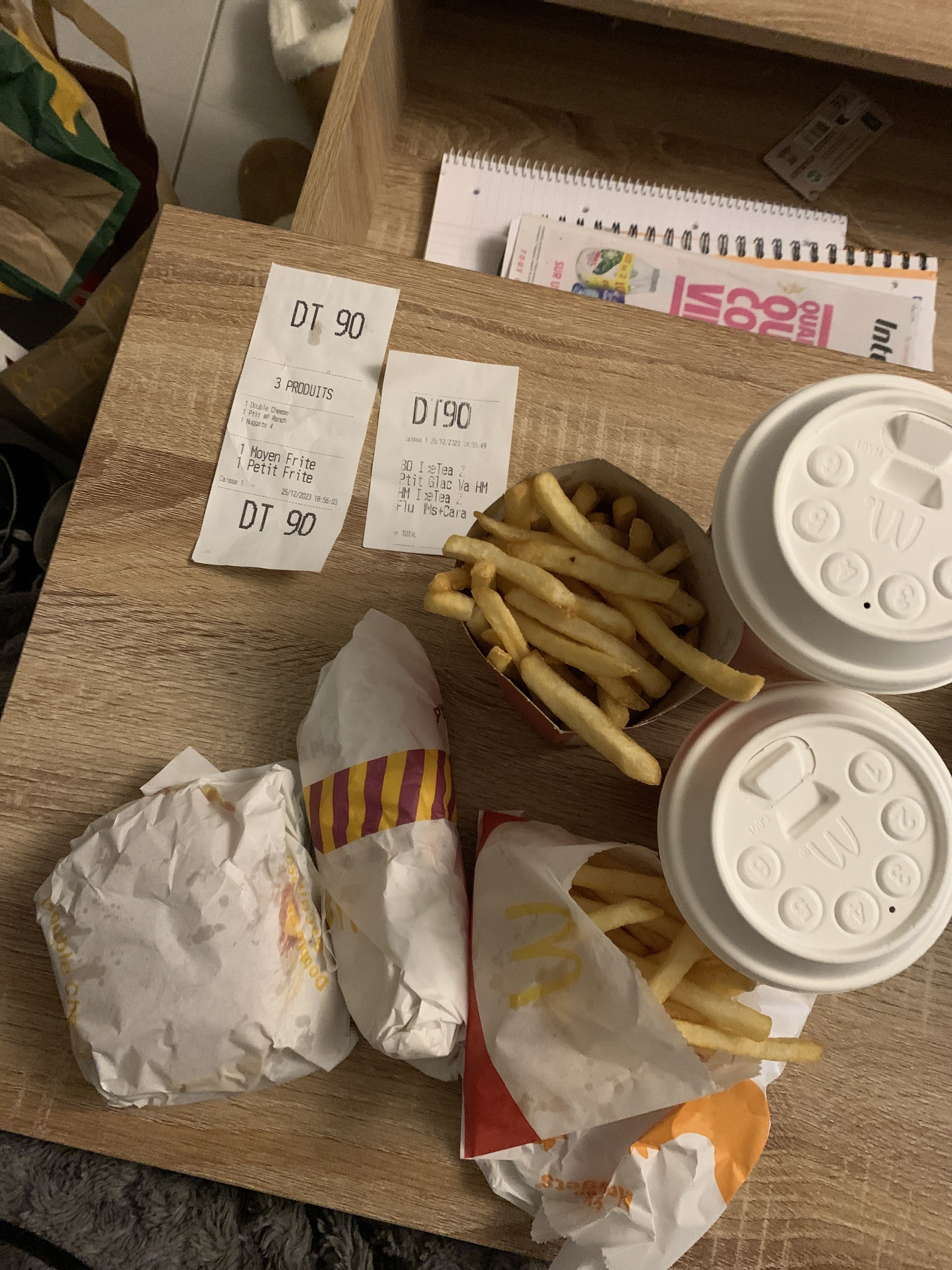 L excellence est bien loin. 15 minutes pour être servi CB43. 20h04 Frites tièdes. Hamburgers ok. McDonald sale. Serviette, tickets, sauce au sol