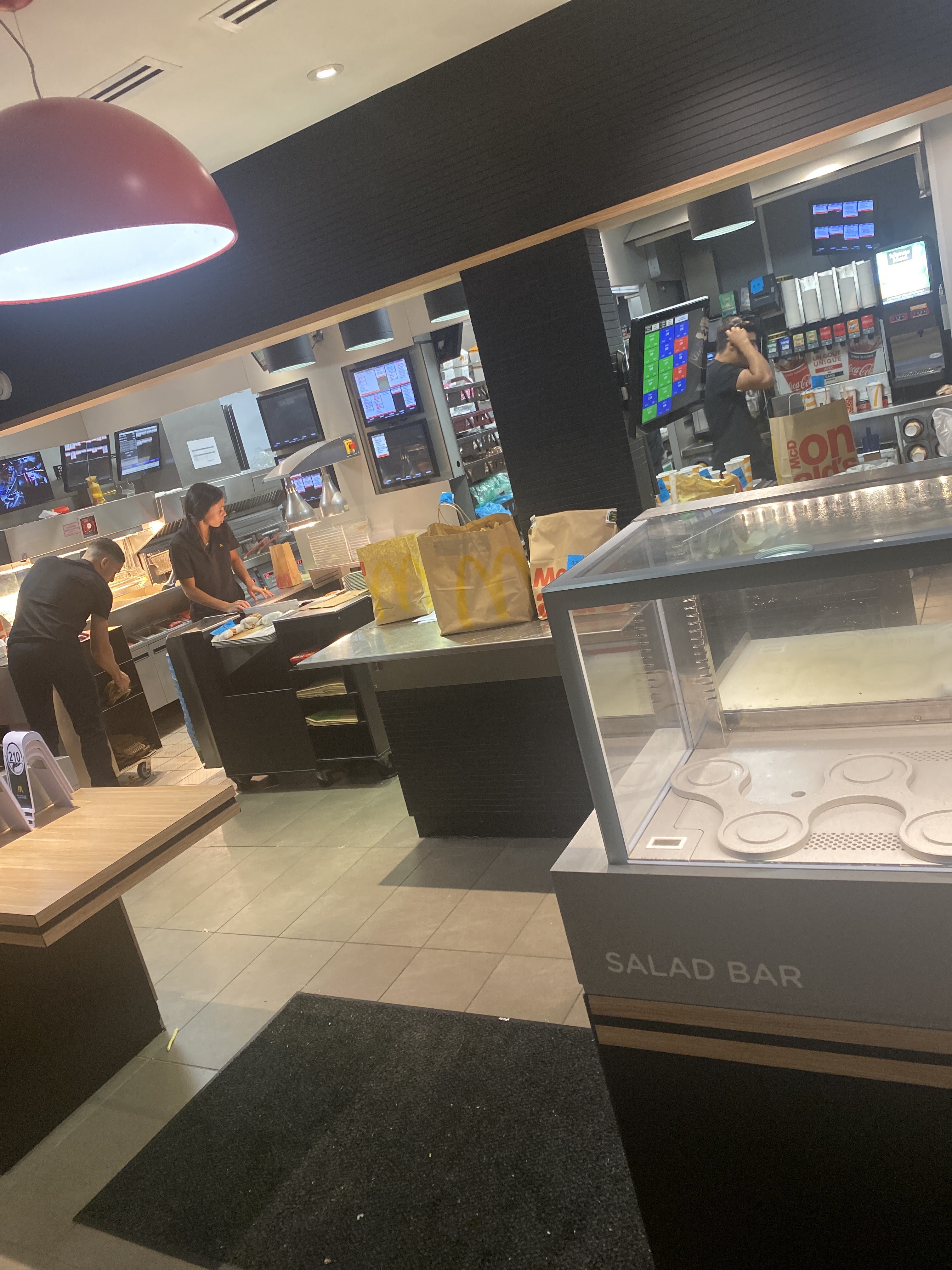 3 fois en l’espace d’un mois que je mange à ce McDo 3 fois où je tombe malade, je ne sais pas si c’est les cuisiner ou les produits mais l’inspection du travail serait bienvenue dans ce McDo