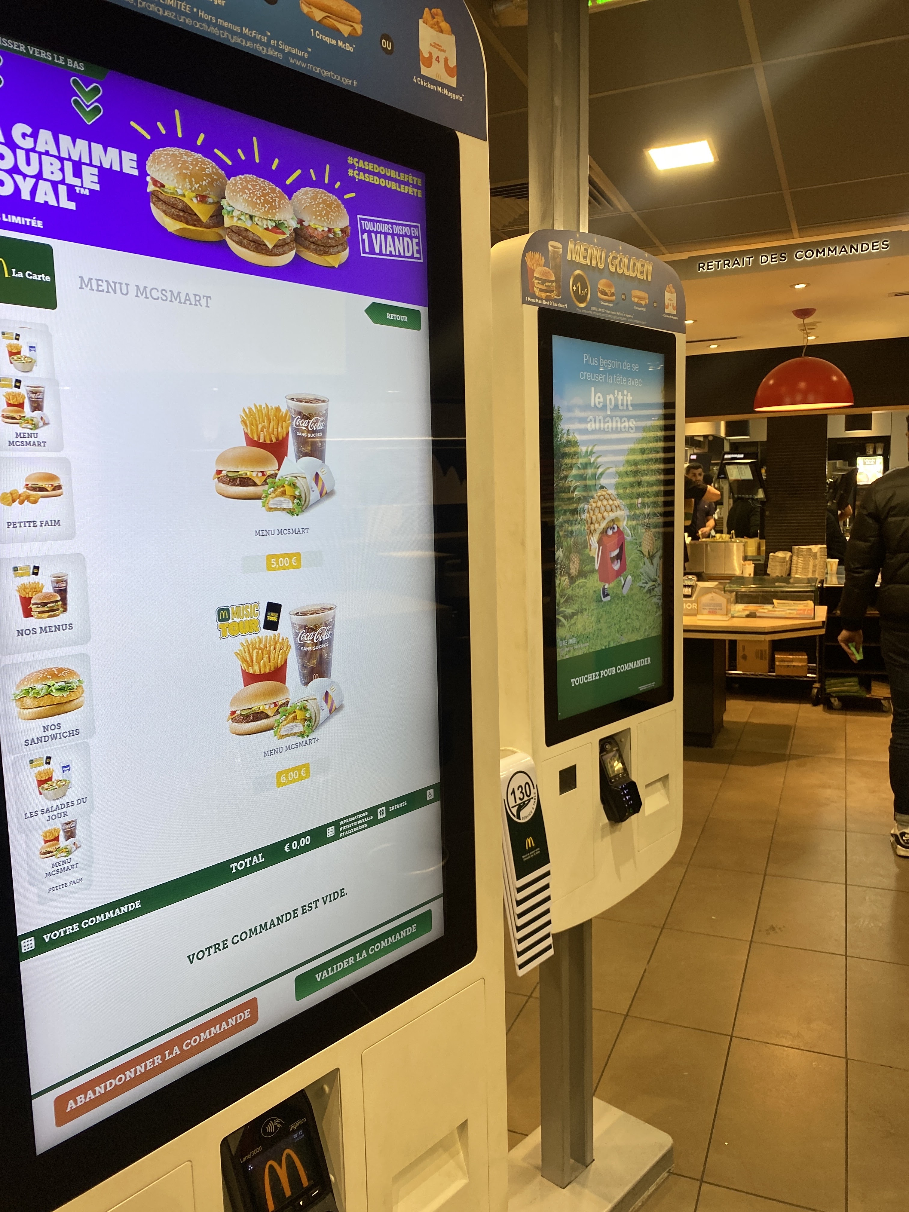 En cette période de covid il est absolument pas normal que les écrans tactiles pour commander ne soient pas nettoyés et désinfectés régulièrement, il y a plein de traces de doigts partout c'est vraiment dégoûtant !! A éviter absolument...