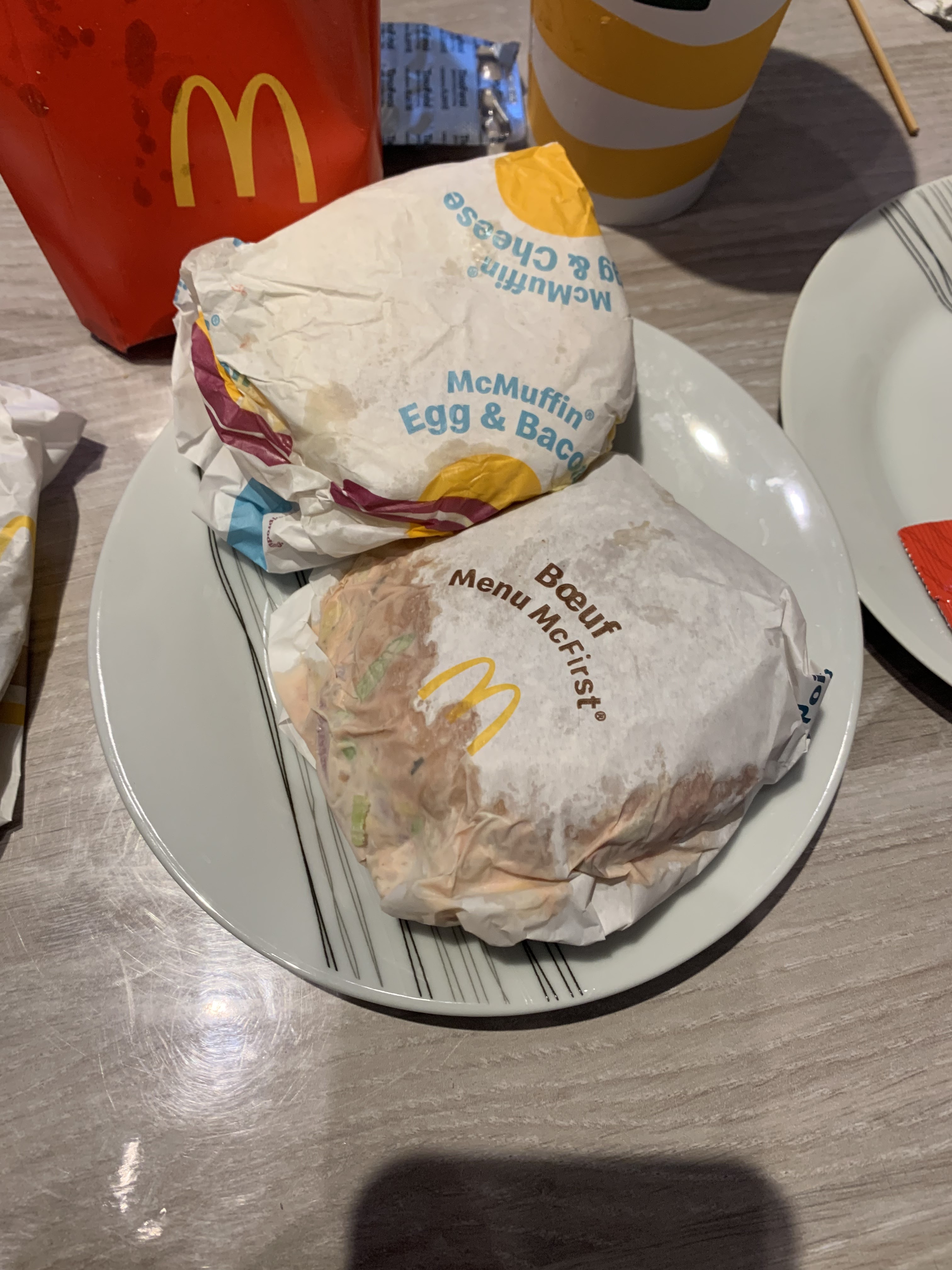 Nième commandes, encore un menu manquant à la commande... comme d'hab.. que ça soit via UberEats ou sur place. Cette fois ci, j'étais sur place, je constate un premier happy meal manquant, malheureusement je n'ai pas vérifié le reste.. un mc fileofish en moins... par contre pour facturer 60balles à 6, pas de souci ! Faites gaffe avant de repartir.. double check systématique.