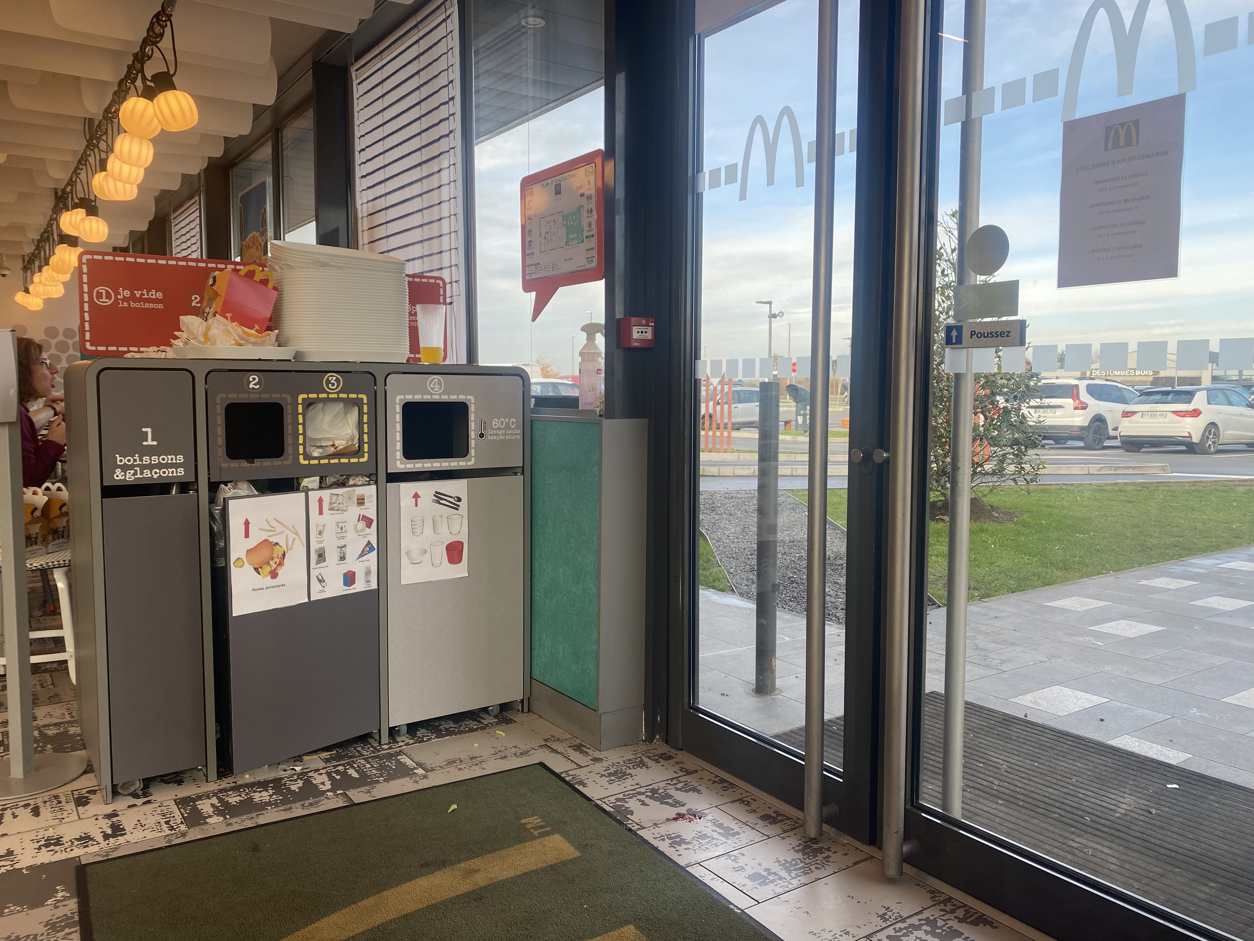 La poubelle de l’entrée déborde et aucune personne de l’équipe ne s’en inquiète ! Compliqué de débarrasser son propre plateau dans ces cas là !!!