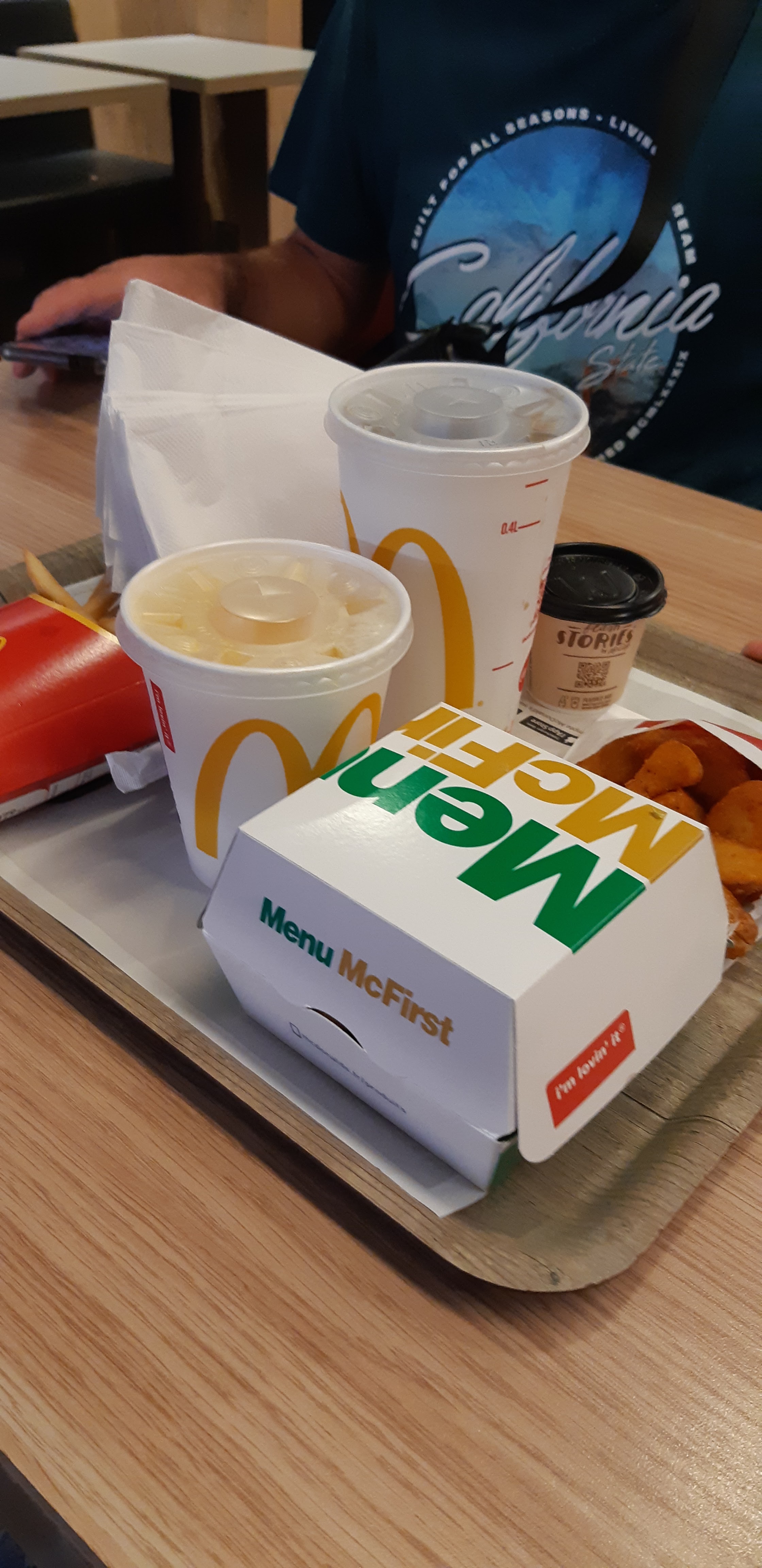 Hier nous commandons un menu mcsmart. Sur 5 produits, 1 était manquant et 1 pas le bon. Il faut le faire, surtout à 15h, avec 10 clients. 💪Nous n'y reviendront pas.