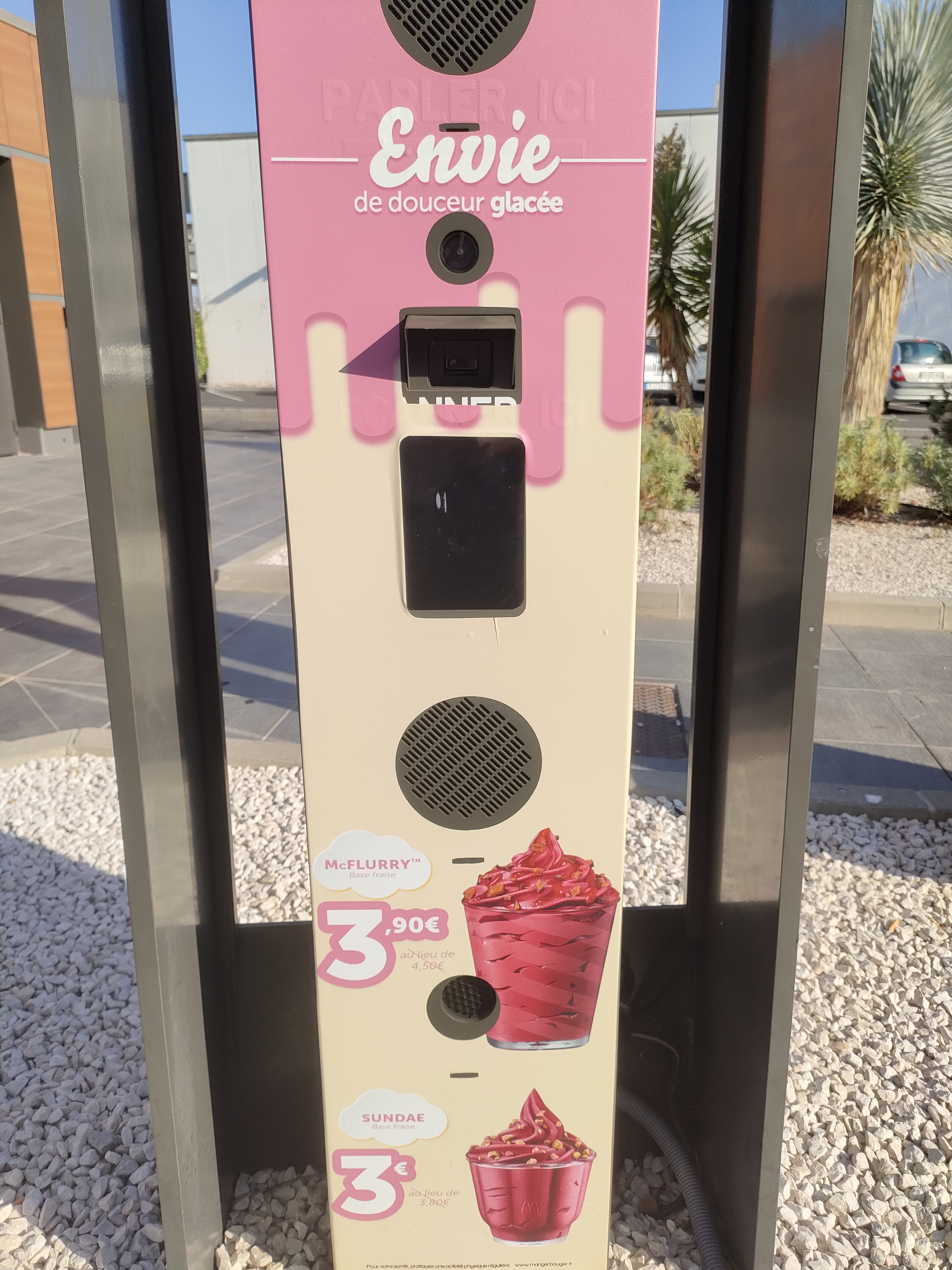 Je commande 3 glaces, sur les 3, 2 sont fondues à peine sortie du McDo(2 min de temps à peine) Quand je vais me plaindre, on me répond comme si j’étais bête que c’est le caramel (logique). Je demande donc à ce que les glaces soient refaite chose faite mais avec une façon de parler plus que désagréable. Je ne recommande pas.