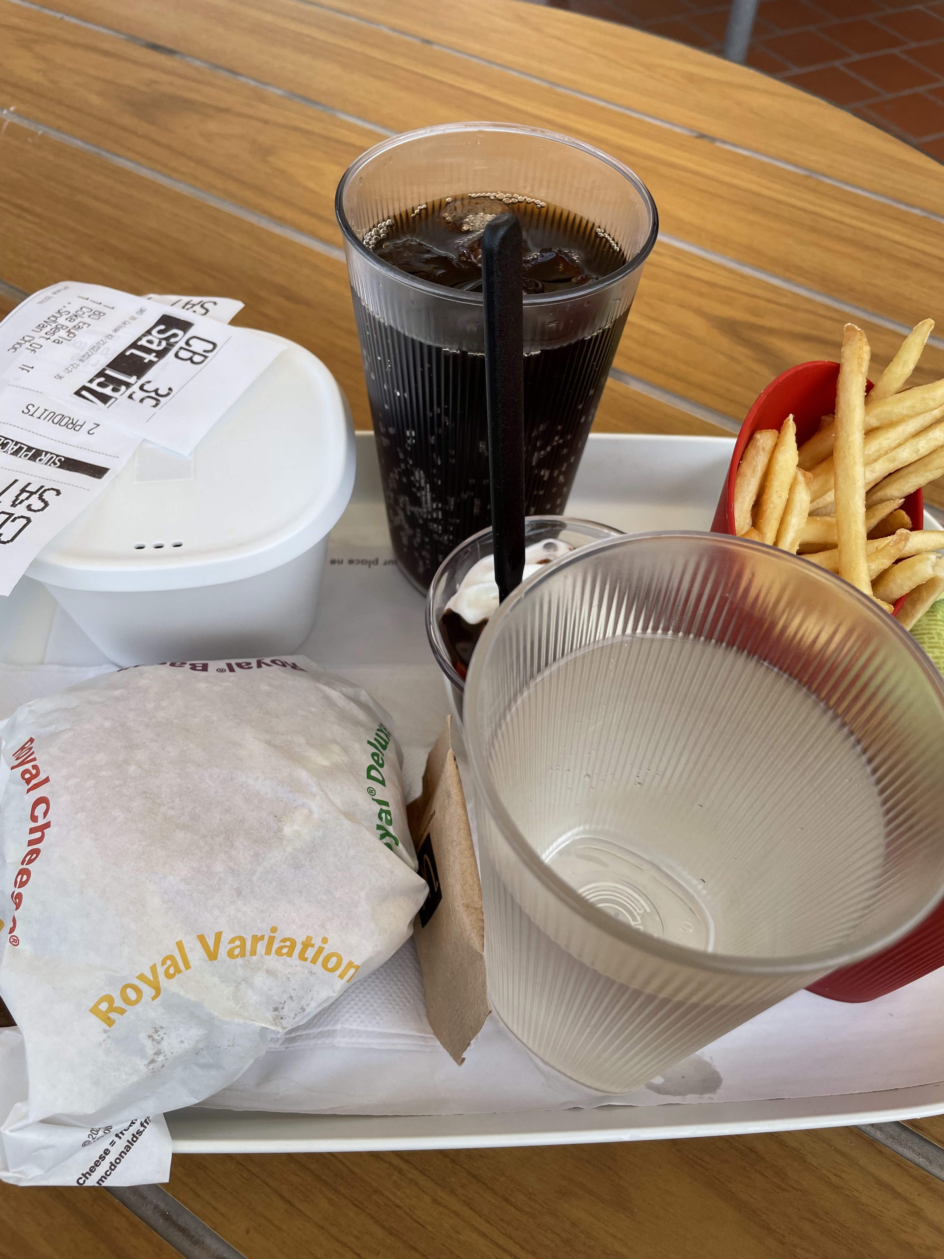 Pas de coca zéro. Pas de sunday fraise. Pas de coulis fraise. Pas de cacahuètes. Pas de sauce à emporter. Hamburger froid, normal vu l'attente. Glace dans les boissons alors qu'on avait demandé sans. Mmmm... Pas terrible en fait.