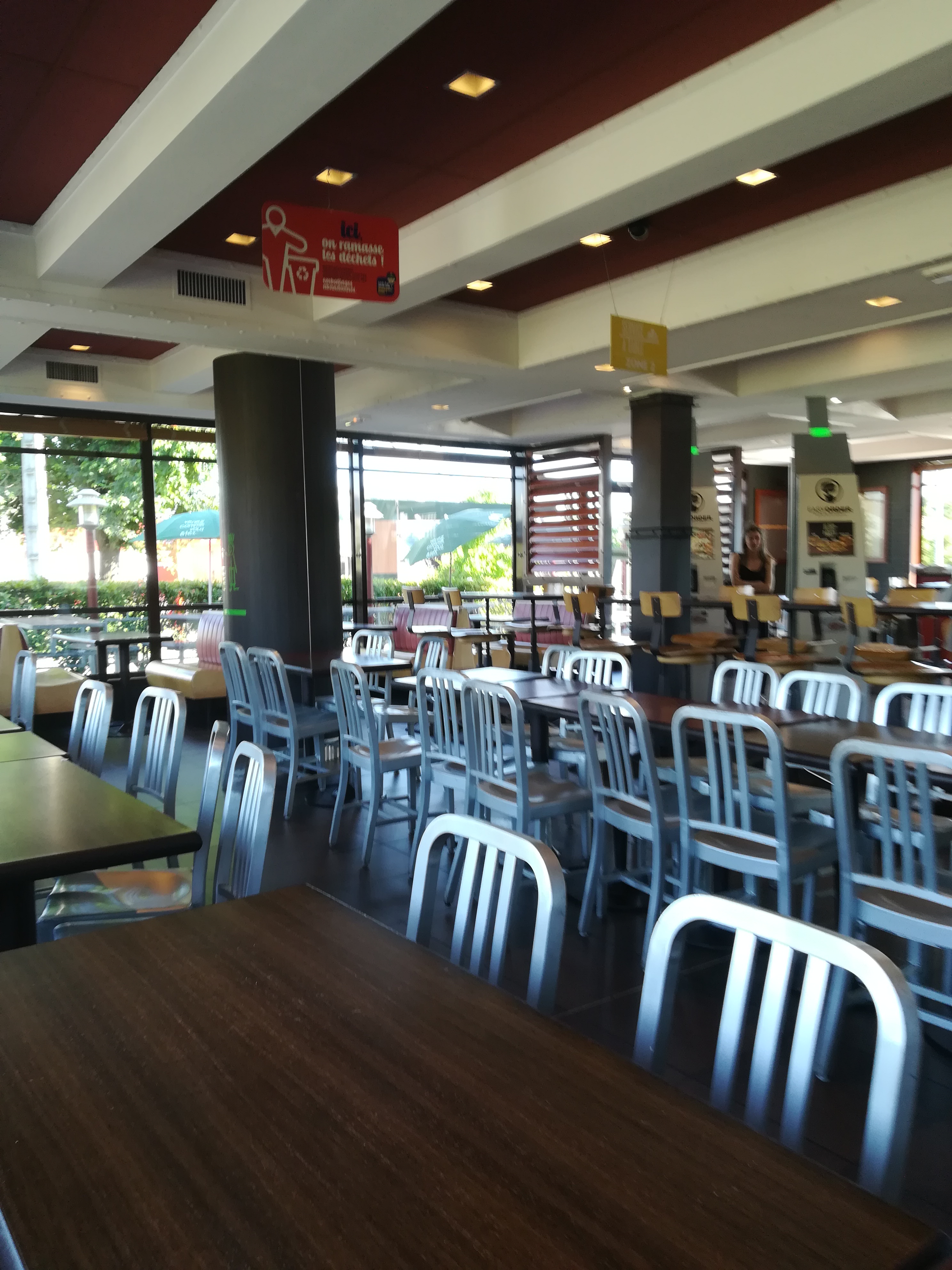 L'espace restauration est propre et bien agencé. Cependant, selon moi, le Service à table et les automates de commandes (écrans tactiles) ne sont pas une avancée, un progrès, car, avec le rush de midi, les files d'attente existent également et le personnel est stressé. Mieux vaudrait agrandir le comptoir, en alternant une caisse pour encaisser les commandes et un espace pour les livrer.