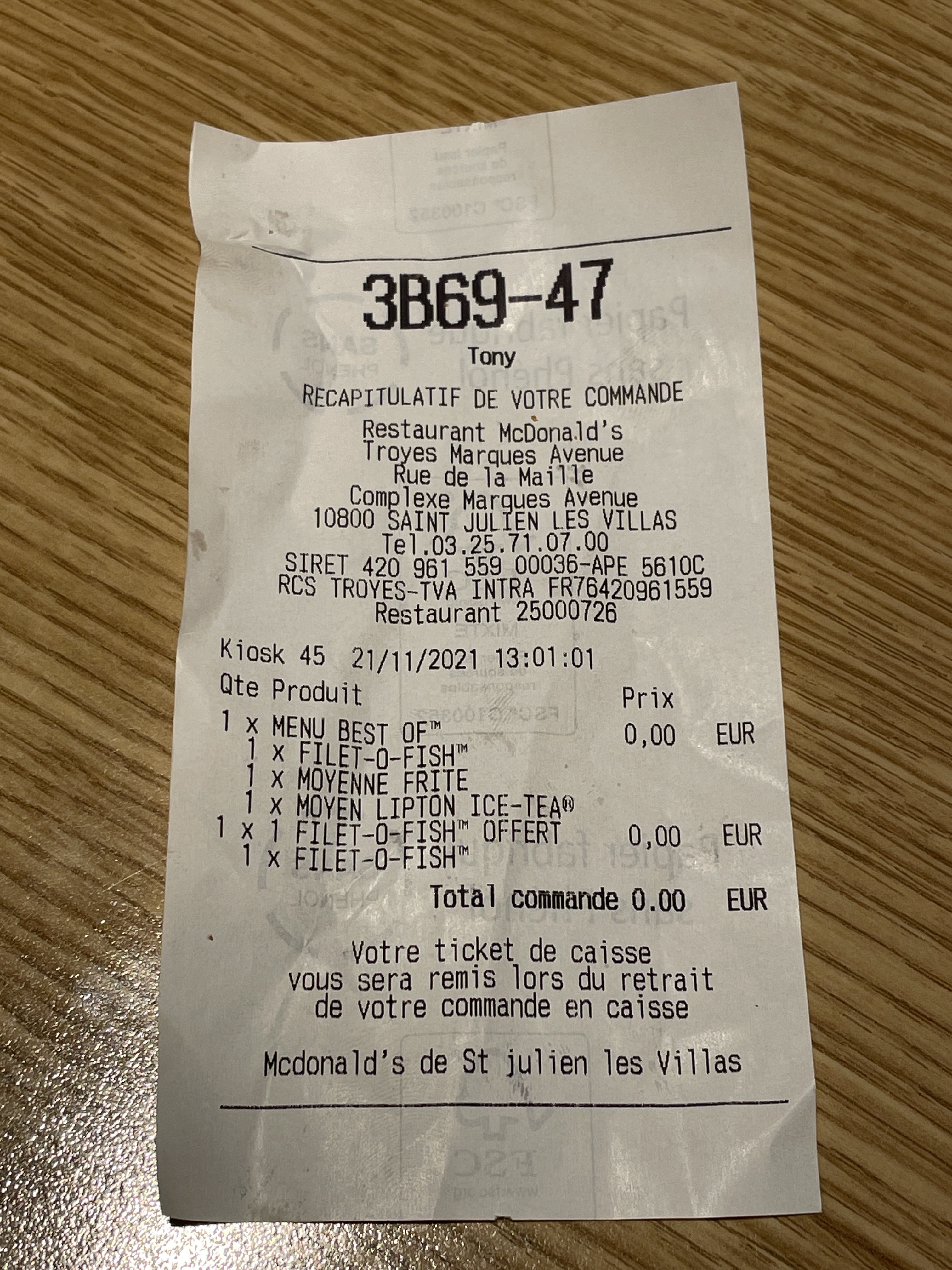 Une fois de plus la commande n'a pas été respecter un mc first au poulet et l'autre au poisson pour au final ce retrouver avec deux mc first au poisson ....