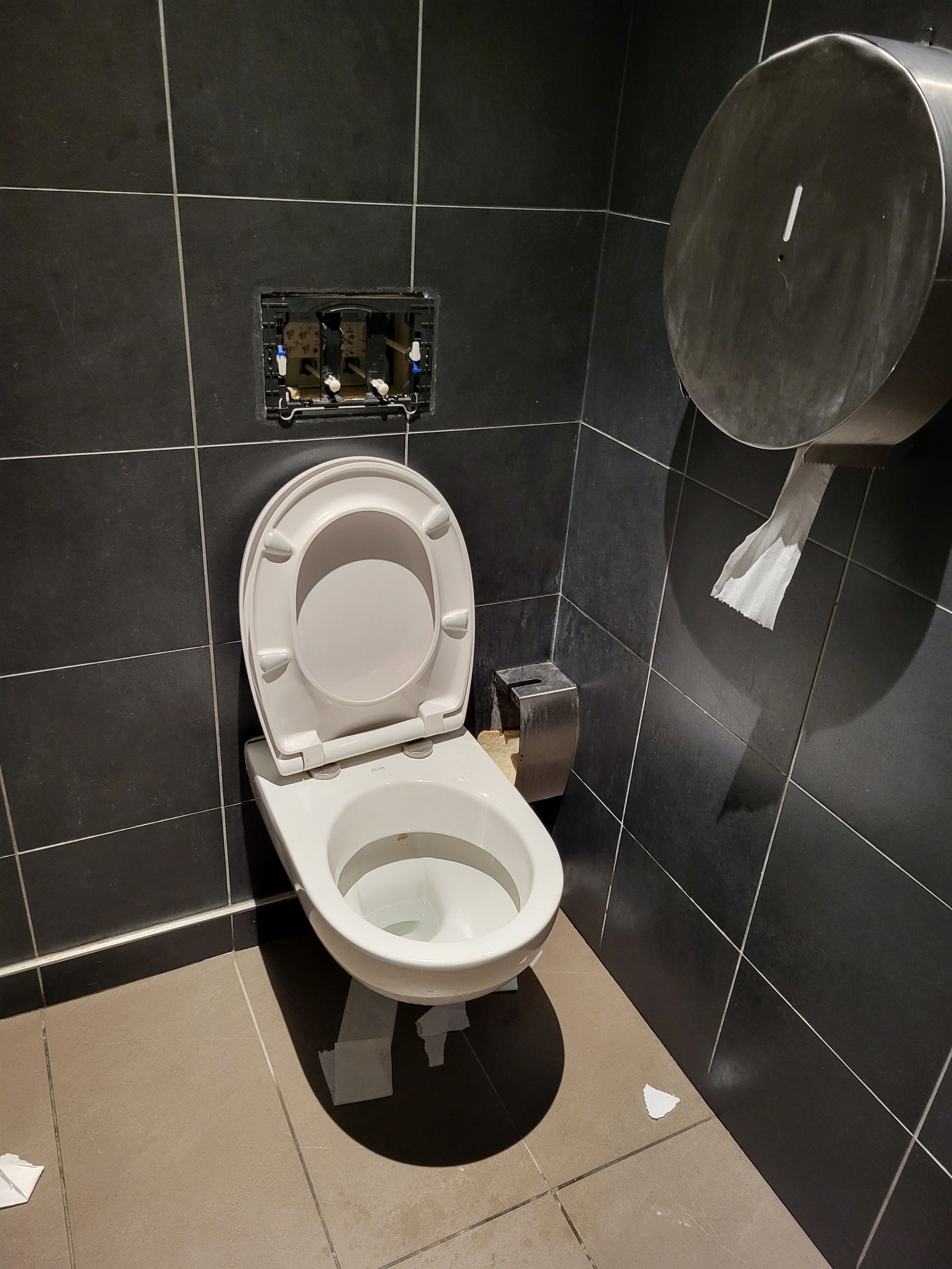 Service très lent et sans sourire à une heure où il y avait très peu de monde (7 clients en salle!). Cafés viennois commandés et expresso livrés. Cafés modifiés après réclamation mais visiblement cela les a énervés. Même pas une serviette dans le plateau. Wrap servis à peine chauds. Des toilettes très mal entretenues comme le prouve la photo et avec une odeur totalement pestilentielle. Si vous avez le malheureusement de faire une réclamation l'équipe arrive à 5 sur vous et se met à parler très fort de façon très virulente pour prendre à témoin tout le restaurant. Un véritable manque de savoir vivre, il est évident que la communication n'est pas leur fort et que l'équipe n'a pas été formée. Je ne recommande pas du tout.