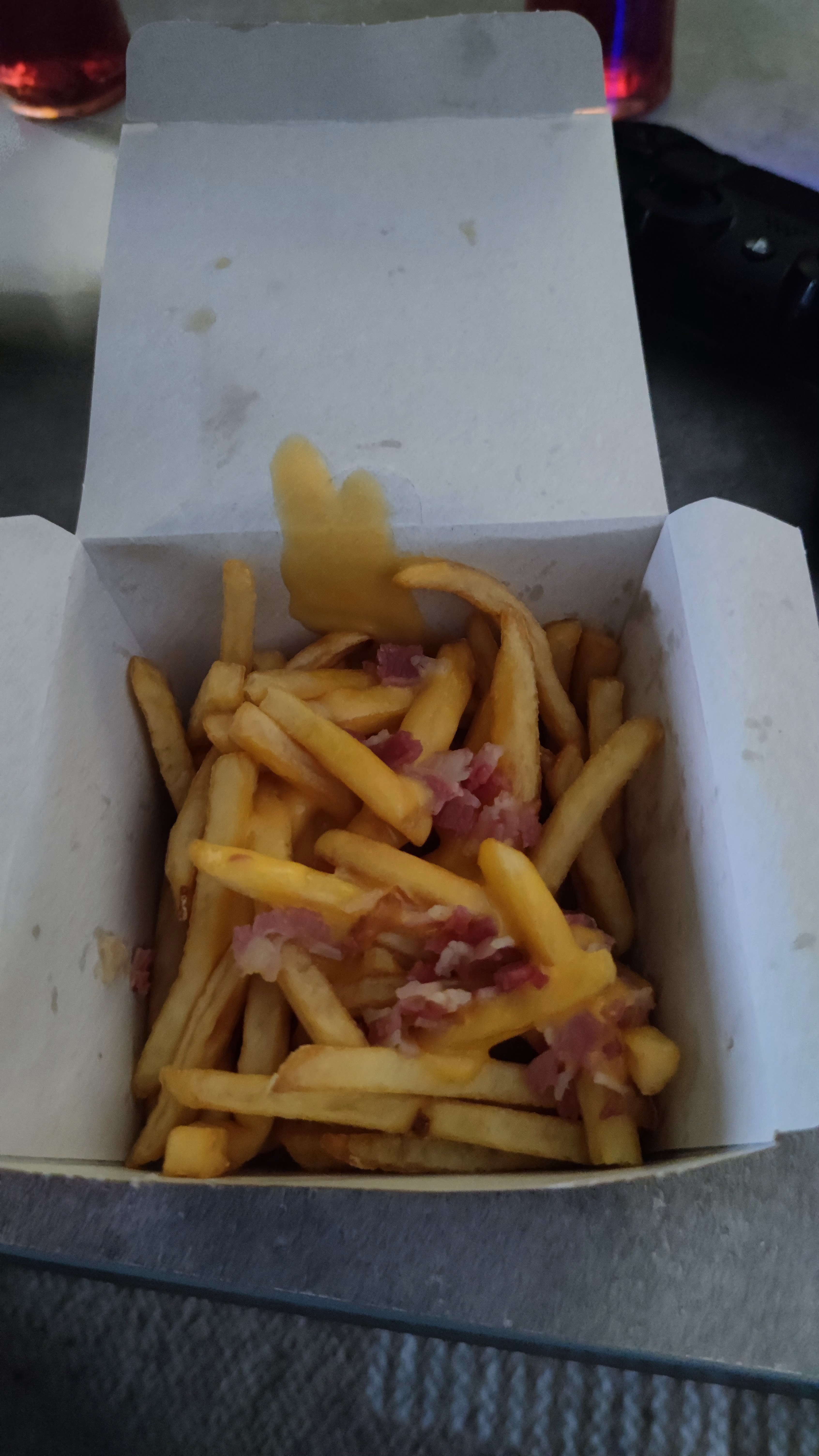 Très long !Même en click and collect! Dit même pas bonjour ! Tout est fait à l'arrache !! Exemple en photo ! Ça doit être censer des frites double cheddar bacon ! Je ne vois pas trop le cheddar!