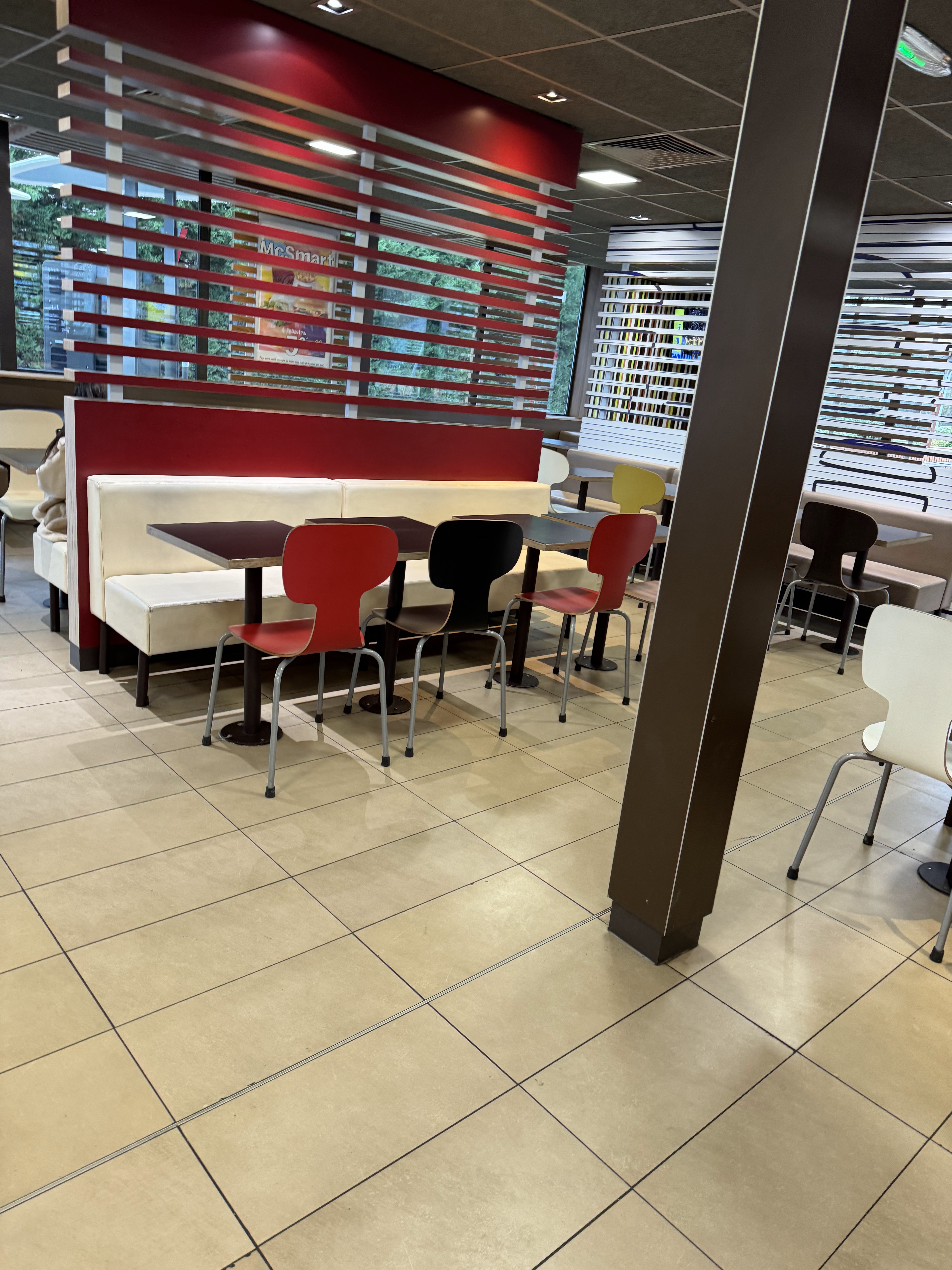 Je déconseille fortement, 10 minutes a essayer les bornes les une après les autres aucune n’a fonctionné , je me présente au comptoir et la l’employé en train de raconter sa vie à une de ses connaissances donc encore 10 minutes d’attente, la il prend ma commande j’attends encore qu’elle soit prête😐 ( 2 sunday et 2 expresso) L’attente se fait finalement assise à une table dégoûtante l’employé me dépose ma commande et même pas un coup de lingettes sur la table, en partant je me dirige avec mon plateau vers les poubelles mais plus de places les poubelles étaient pleine, le sol était collant, désolé mais je ne suis pas du genre à critiquer mais la !!!! Au secours pourvu que l’on n’attrape pas de gastro 😷