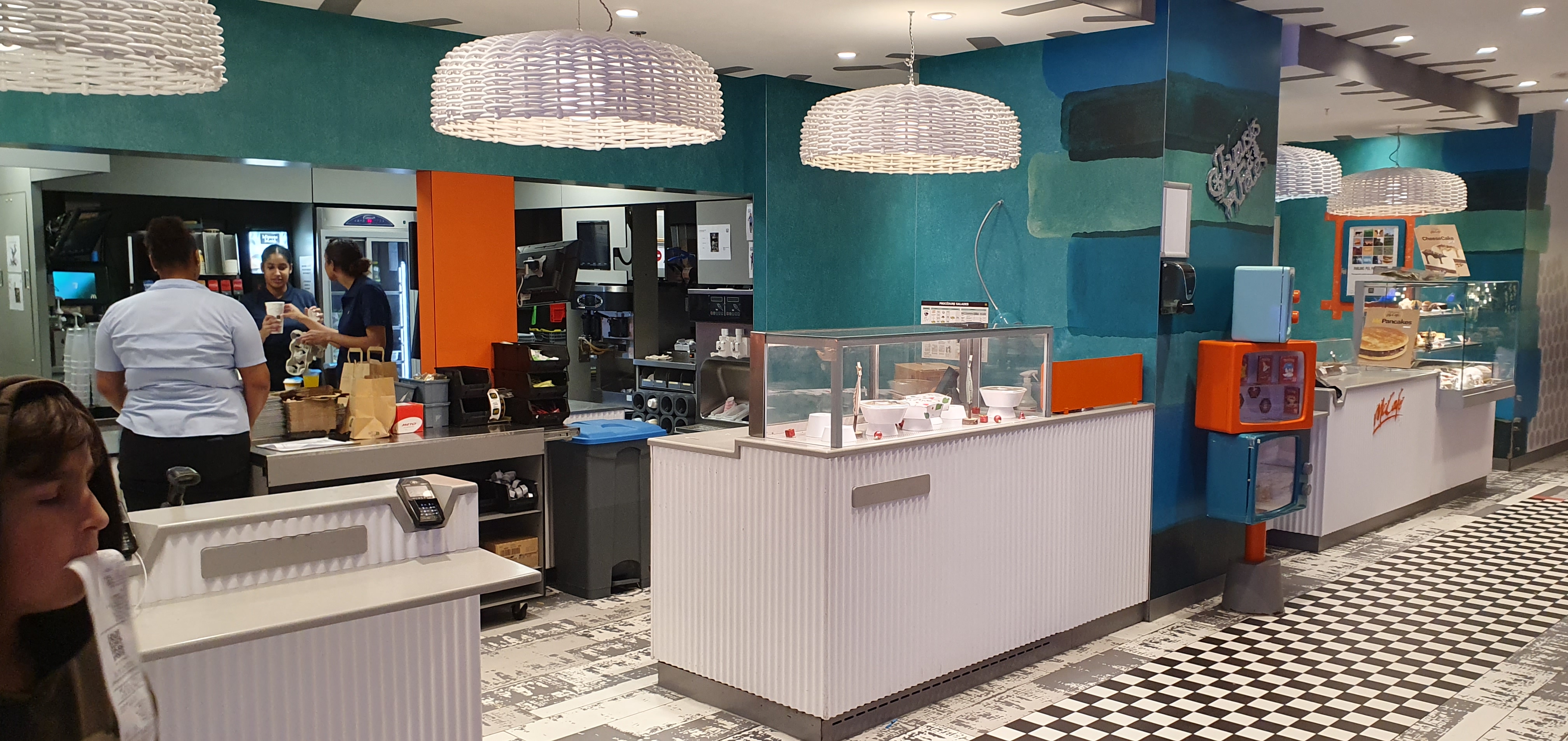 Problème au niveau des chevalets, galère de trouver pour finaliser la commande. Et pas de tickets de caisse en fin de comme permettant la validation de la commande. Je commande une boisson et 2 glaces, le serveur m'amène le plateau juste avec la boisson et me dis que pour les glaces qu'il faut aller au comptoir, du grand n'importe quoi.