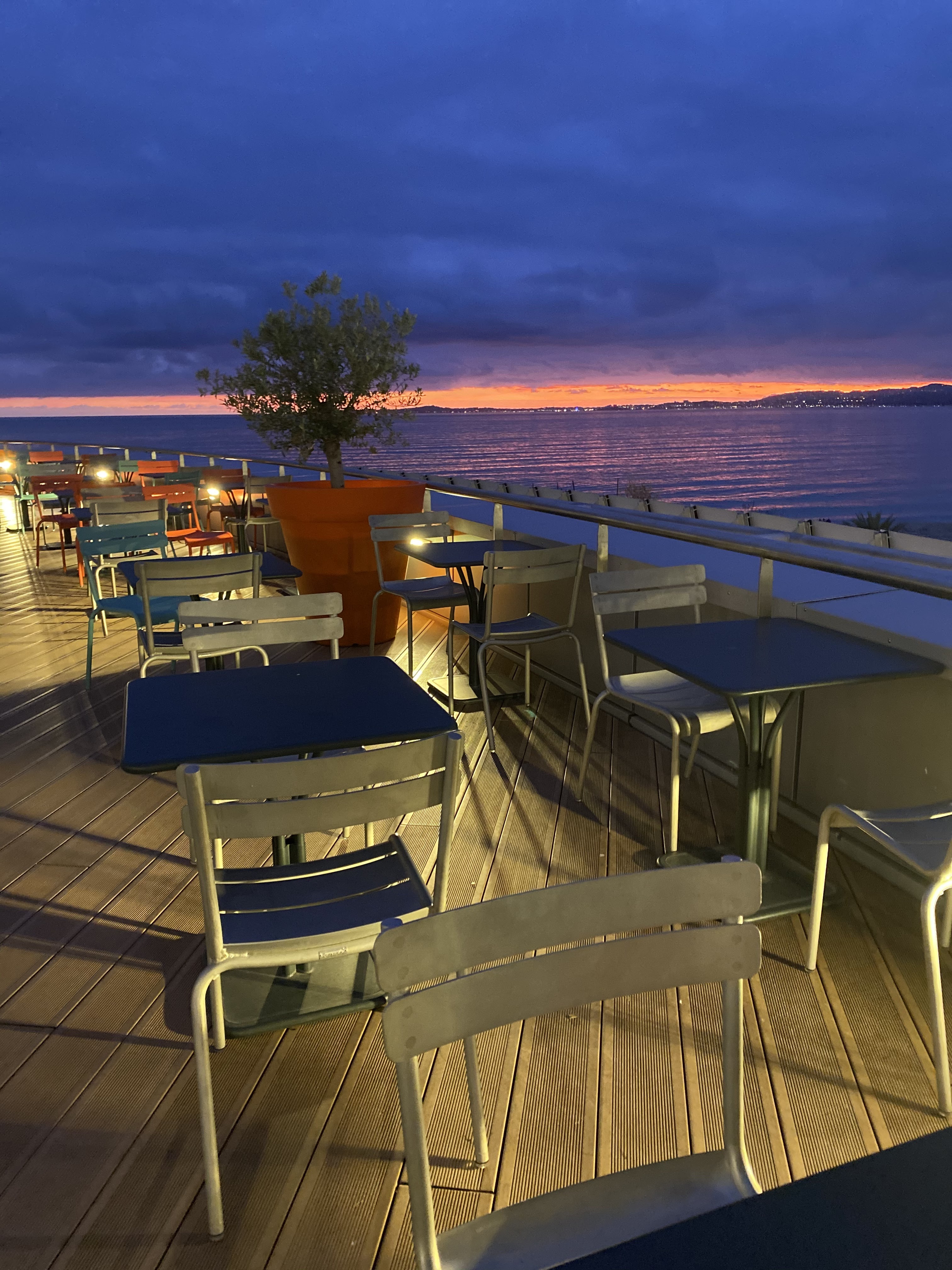 Aucun pass est demandé, commandes aux bornes uniquement Terrasse splendide avec vue mer Les tables extérieurs n étaient ni nettoyées ni débarrassées