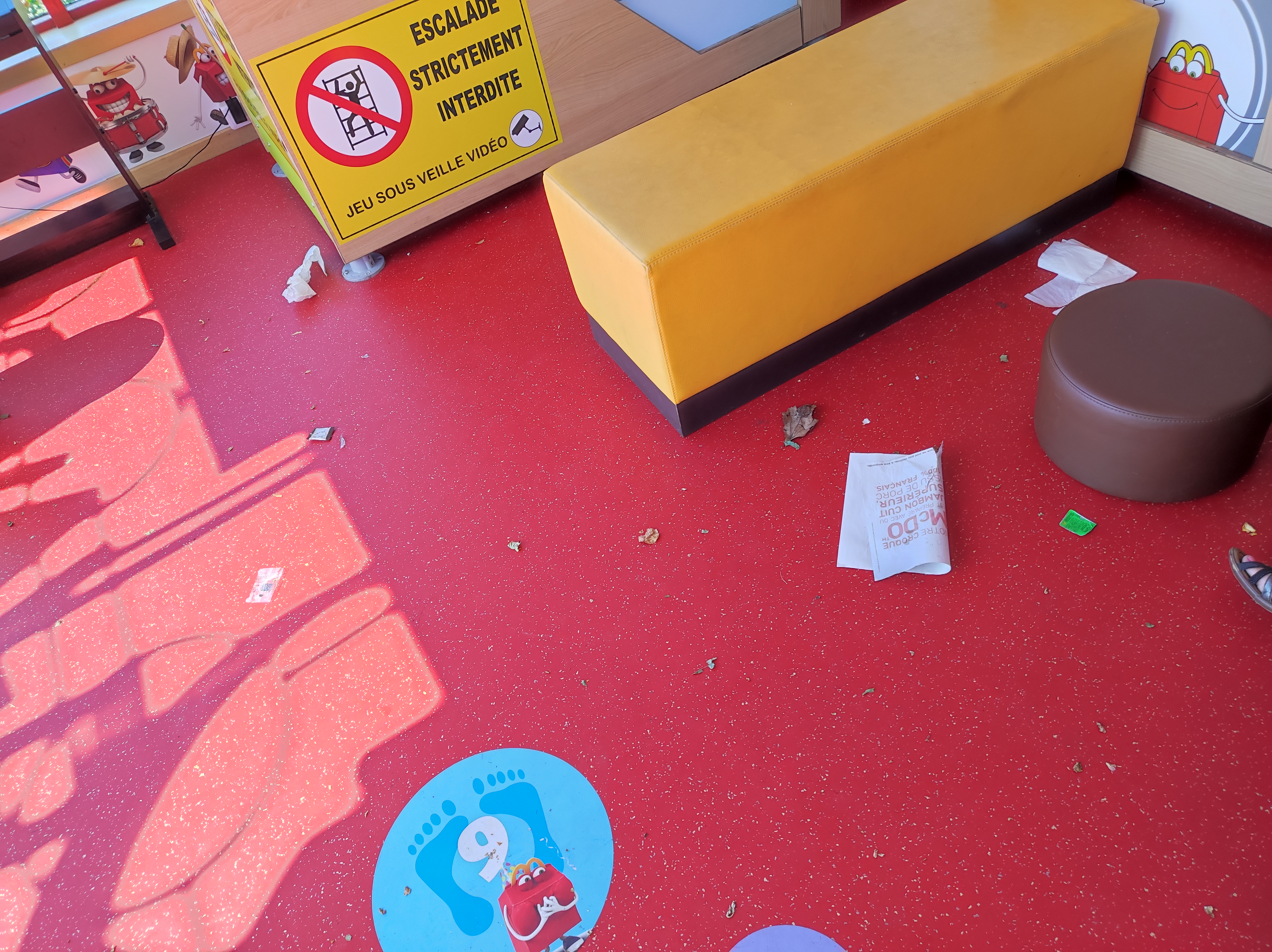 Service à table rapide mais la quasi totalité était tiède voir froid, malgré la demande de suppression des cornichons dans les burgers (seuls les potatoes chaude et croustillantes). Les tables après le départ des gens ne sont pas nettoyées et à 18h30, les poubelles sont déjà pleines, non vidées et du coup il y en a de partout. Le principe d'un espace jeu pour les anniversaires est sympa, mais cela pourrait être accessible aux autres enfants quand il n'est pas occupé, au lieu d'être fermé à clé. Dommage, on ne va pas chez McDonald's que pour les jeux mais quand on est avec des petits, c'est un plus non négligeable.