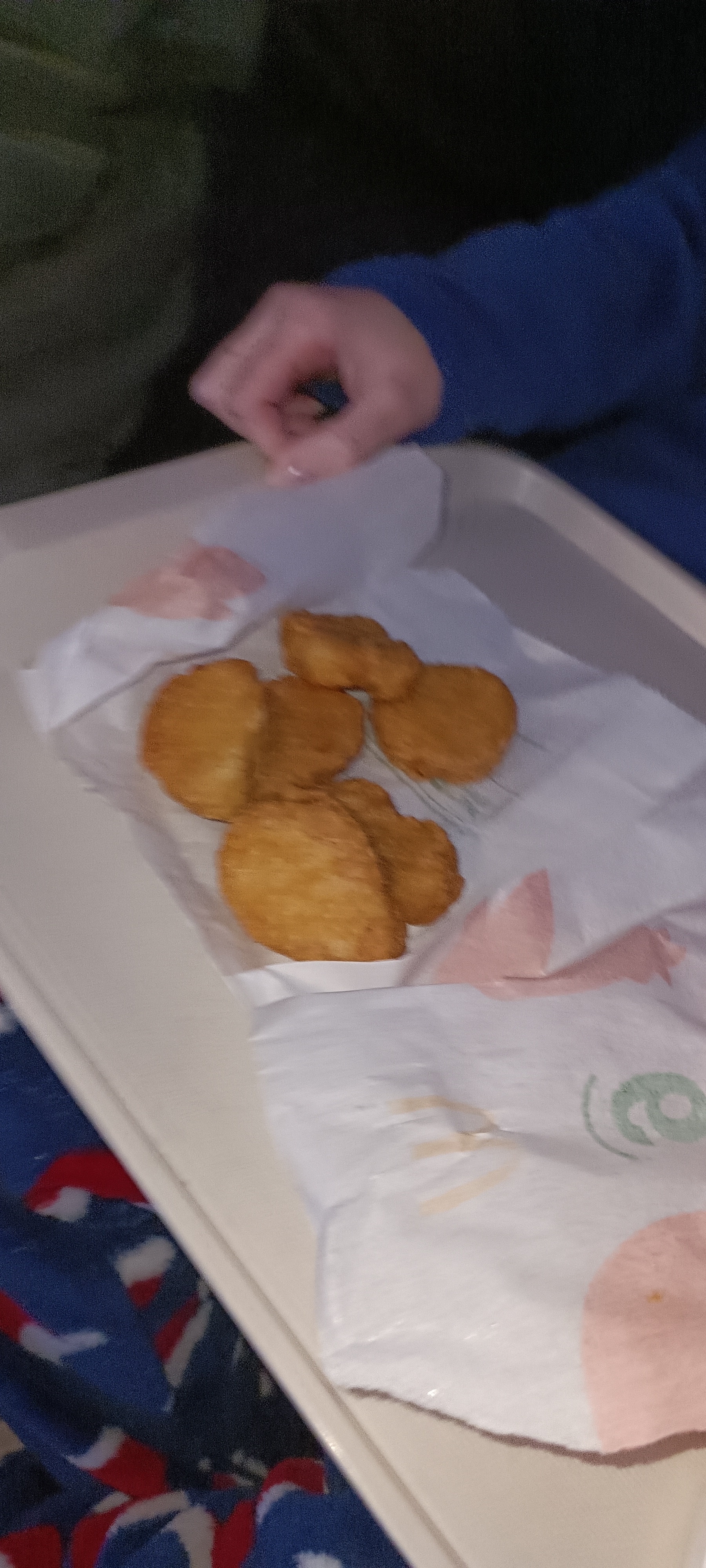 Petit plaisir de ce samedi pour faire plaisir à ma fille ! Dommage frites pas cuites, mélangées avec d'autres.... Bien pour la poubelle !