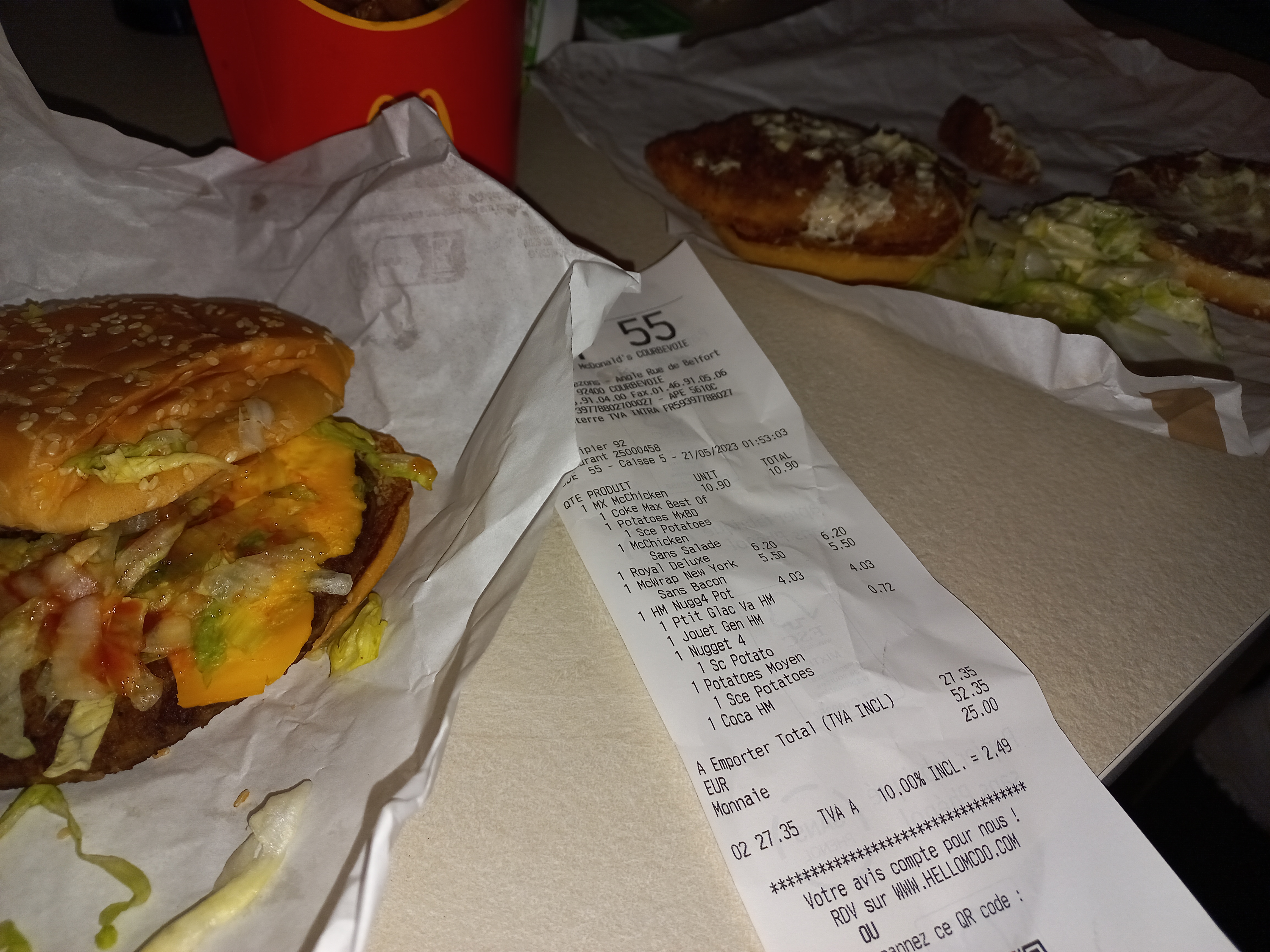 Comme c'est bon un Mac donalds nocturne !! Service à table ou à emporter c'est vous qui voyez.