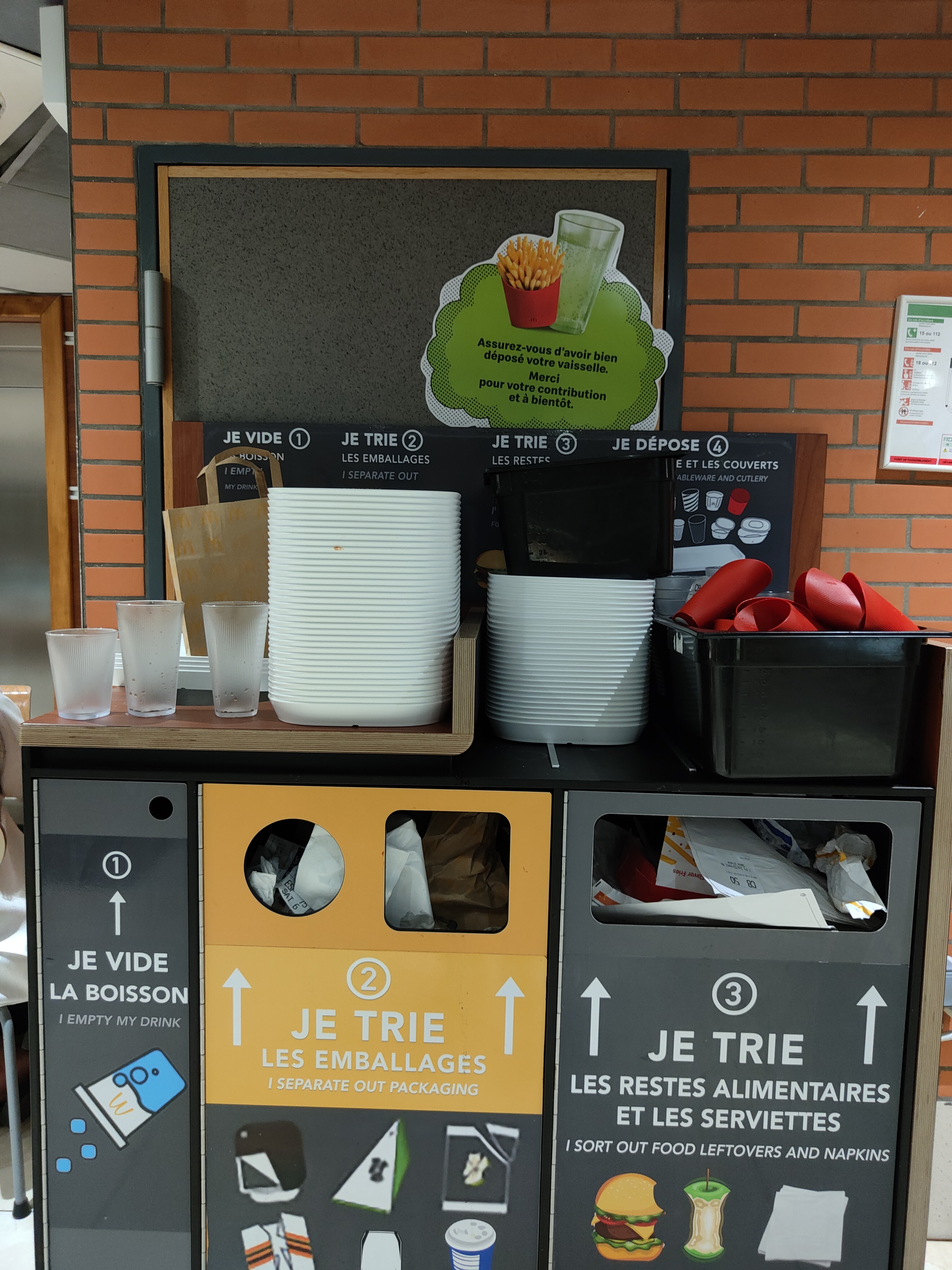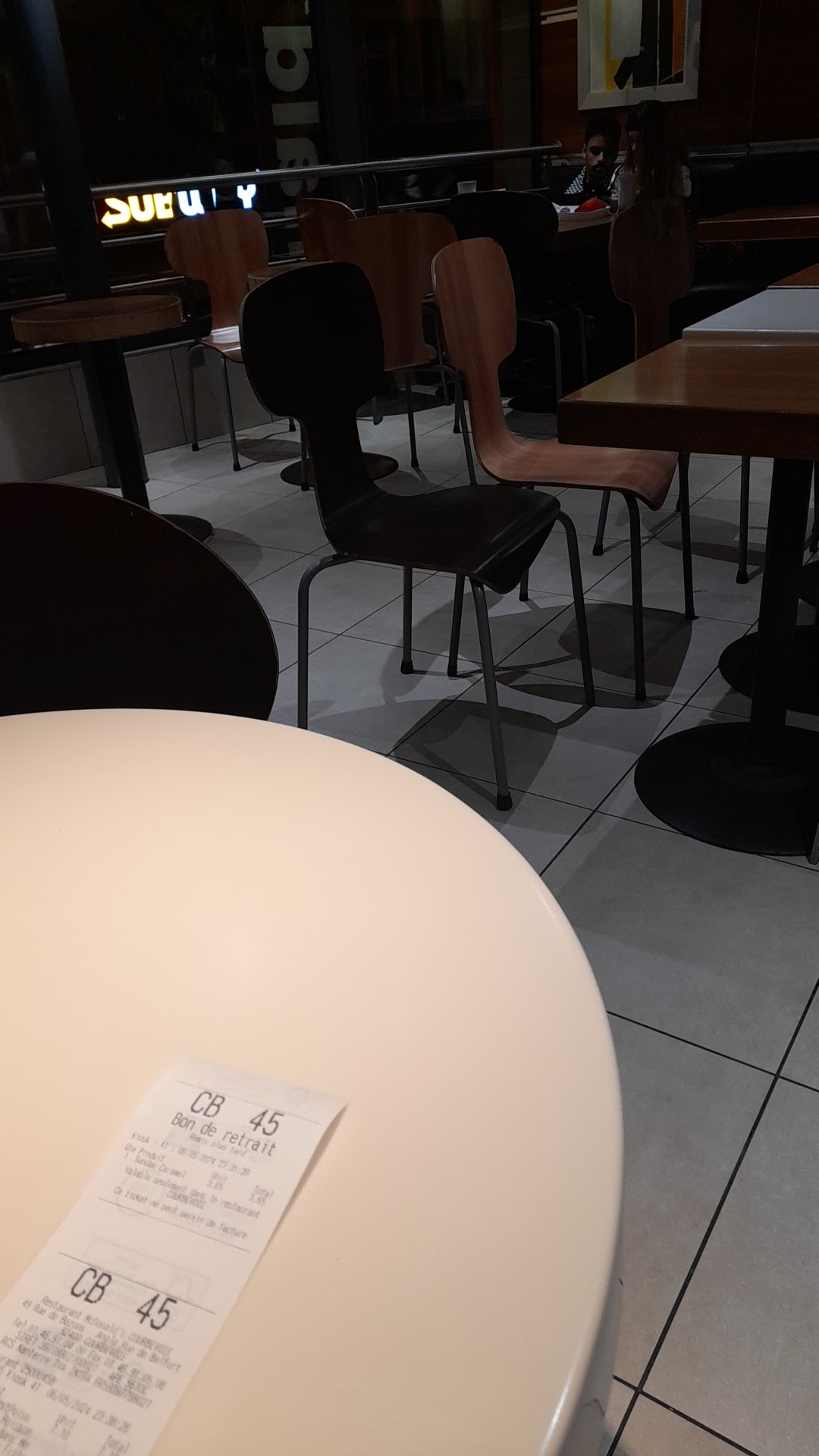 Le pire de tous les Macdonald que j'ai pu tester ,service déplorable ,mon petit fils a demandé de pouvoir aller au toilette on lui a dit s'il n'y avait plus de jetons pour ouvrir la porte ,je leurs ai dit que c'était pas normal de plus on attendait d'être servi depuis un bon moment et en allant réclamer ce fameux jeton je me suis aperçu que notre commande traînait sur le comptoir depuis un bon moment , ce jour là la salle du 1er étage était vraiment sale ,détritus partout sur les tables, par terre j'ai donc décider de me faire rembourser et d'aller ailleurs, depuis je ne mets plus les pieds à l'intérieur