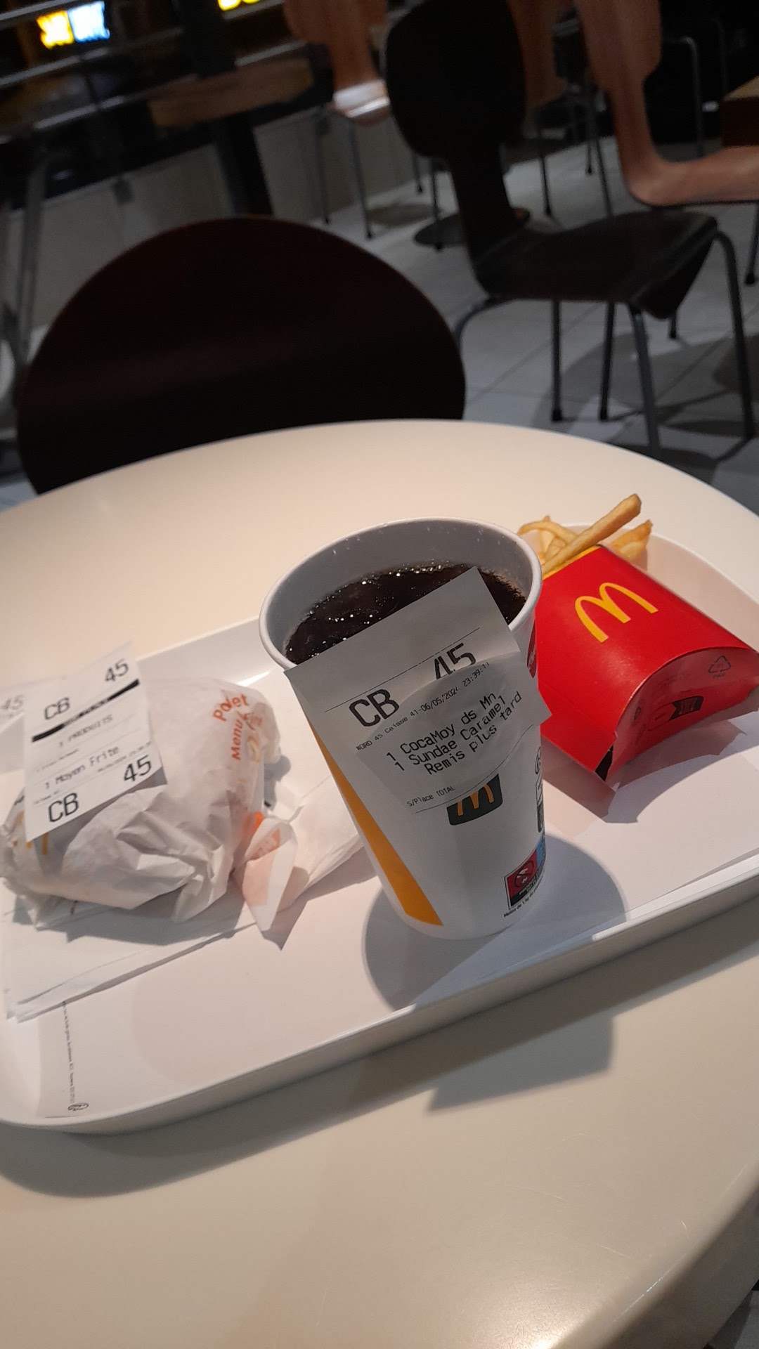 Comment vous dire que si vous n'aimez pas la glace à la sauce épicé n'y allez surtout pas car à la place d'un nappage au caramel j'ai eu le droit à une sauce bien épicé. Résultat des courses un MC flurry qui a fini à la poubelle et je ne vous parle même pas de leur façon de faire les Burger tout en vrac.... Heureusement les frites était bonne 🤣