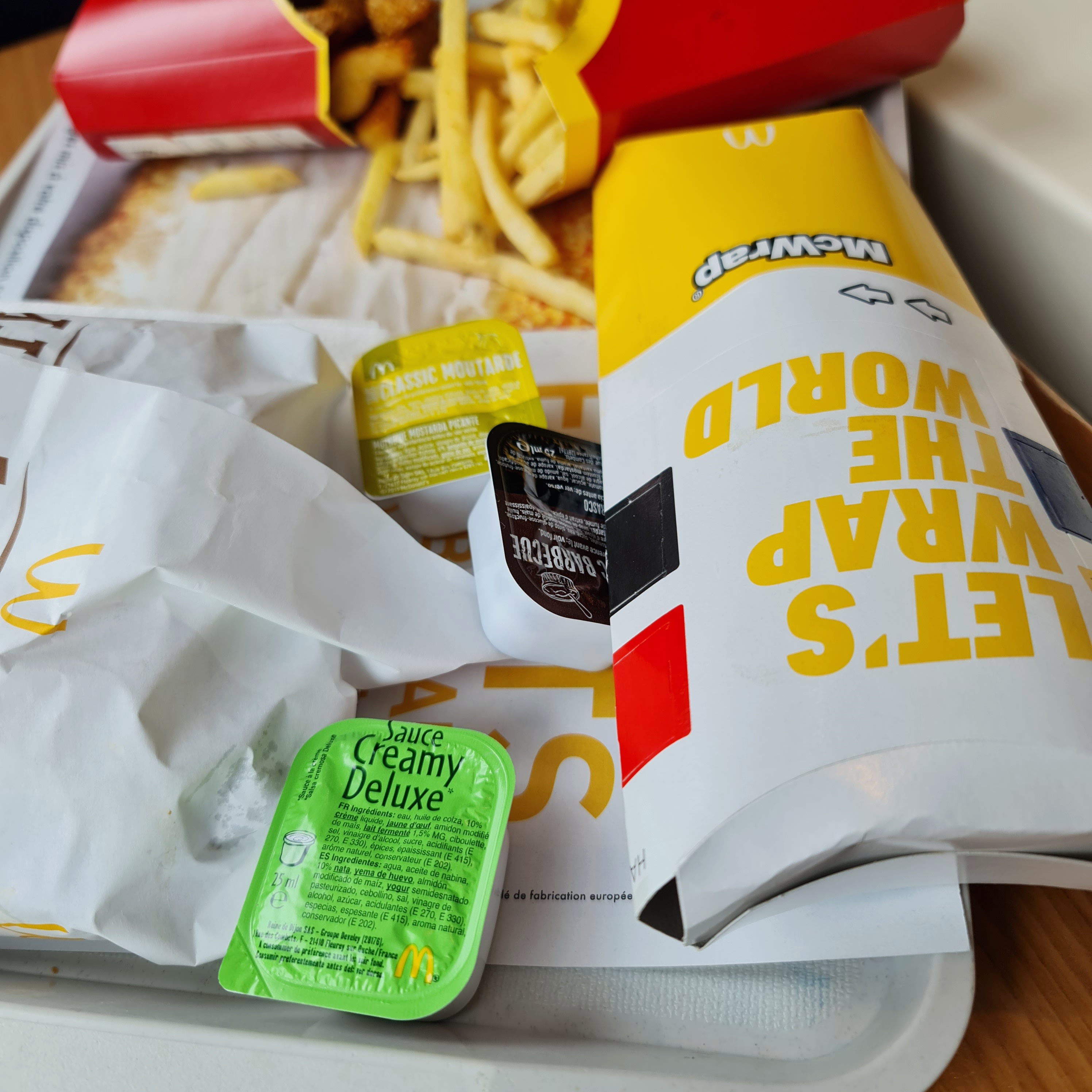 Expérience du 11/10/2022 Je commande à emporter 30 min et 15 numéros de commandes dépassés je vais réclamer ma commande On me tend un plateau en me disant qu’on m’a cherché partout Sans vérifier si c’est en encore chaud un employé transfère le contenu de la commande dans un sac et le le tend Je vérifie le contenu il ne s’agissait pas du tout de ma commande Je réclame le responsable qui prend le sac le ticket et ne me dit rien 10 min plus tard le responsable revient avec un sac et vérifie son contenu et le le tend en s’excusant. Je vérifie le contenu à mon tour et lui retourne il manquait deux sauces Résultat je repars 40 min plus tard avec ma commande pour laquelle il manque toujours une sauce Mc Donald sérieux !