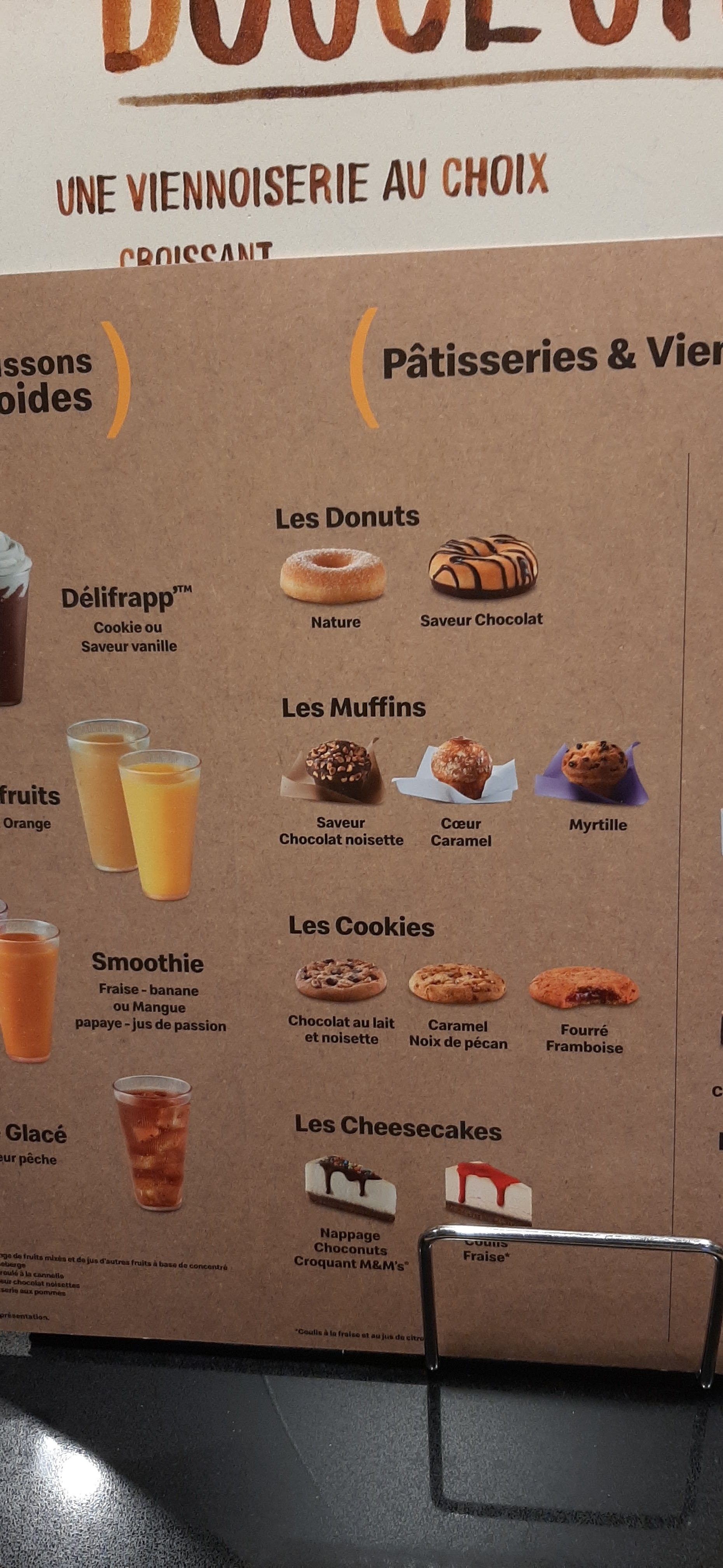 Sur l'heure du goûter, seuls 2 points de commandes sont ouverts, les autres écrans sont tous éteints, la queue aux deux restants est importante.. Nous allons donc au point café, où sont 2 membres du personnel...qui nous ignorent ; jusqu'à ce que le JH dise à la JF de prendre notre commande,.. me faisant répéter plusieurs fois, pour tout de même ne pas tout noter (nous tentions d'avoir 2 boissons et 2 smoothies), puis elle s'énerve sur la machine pour les tickets,avec jurons compris et demande à deux collègues visiblement exaspérée. Nous allons nous asseoir,ou, plutôt tenter de trouver une table propre, ... vous aurez compris que notre expérience a été vraiment décevante, Trop peu d'attention aux clients et à la propreté des lieux. Bravos aux deux responsables qui gardaient leur calme.