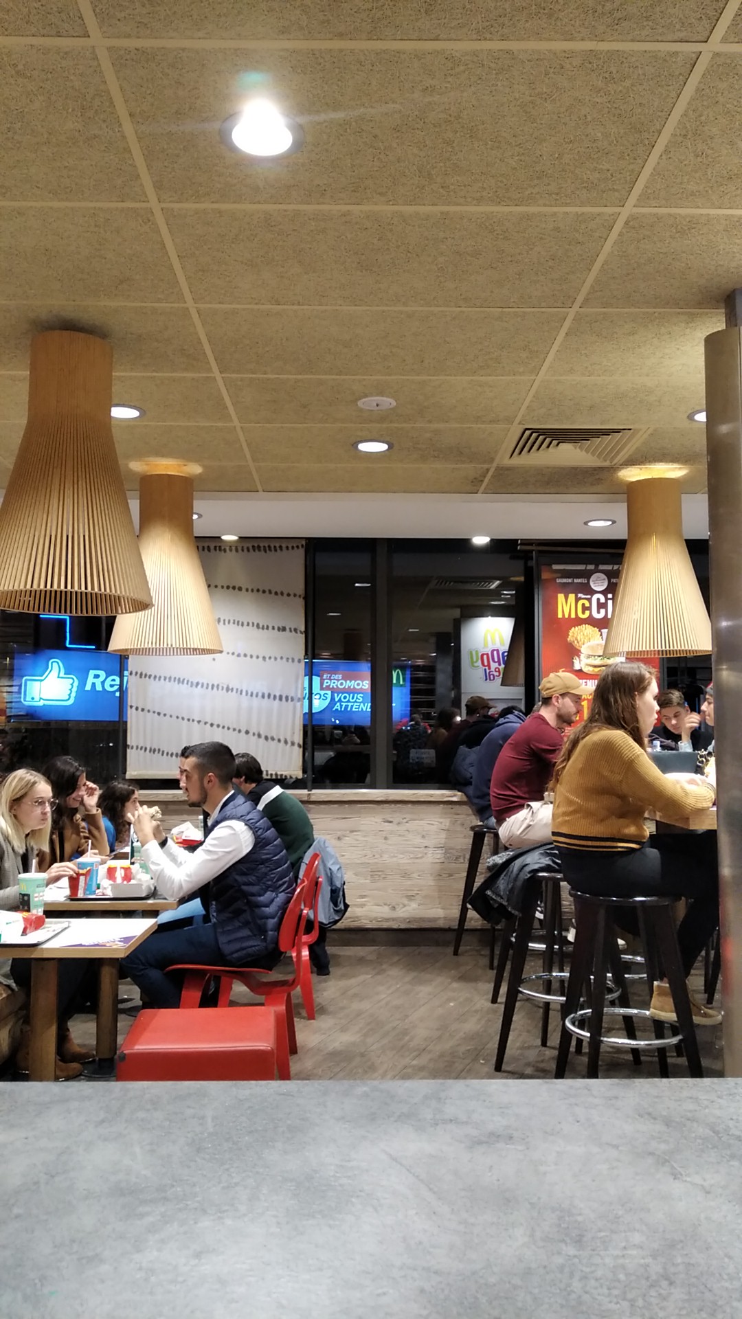 A peine rentré dans le restaurant, il y a des serveurs mcdo avachi sur un canapé.. je demande un café latte avec du sirop de caramel, limite on se fout de moi.. genre ça n'existe pas, je debarque d'une autre planète.. alors qu'ils en ont pour le mcflurry.. on demande à emporter et bien sûr on nous sert dans des gobelets solide.. et des clients partent sans débarrasser leur table, qui elle reste encombré pendant un très long moment, avec des serveurs qui passent devant plusieurs fois en l'ignorant, alors même que la salle se remplit de clients.. je n'aime pas McDo de base mais alors là, ça confirme bien pourquoi.. et encore j'ai pas parlé de l'hygiène et des déchets sur les bords des fenêtres etc...