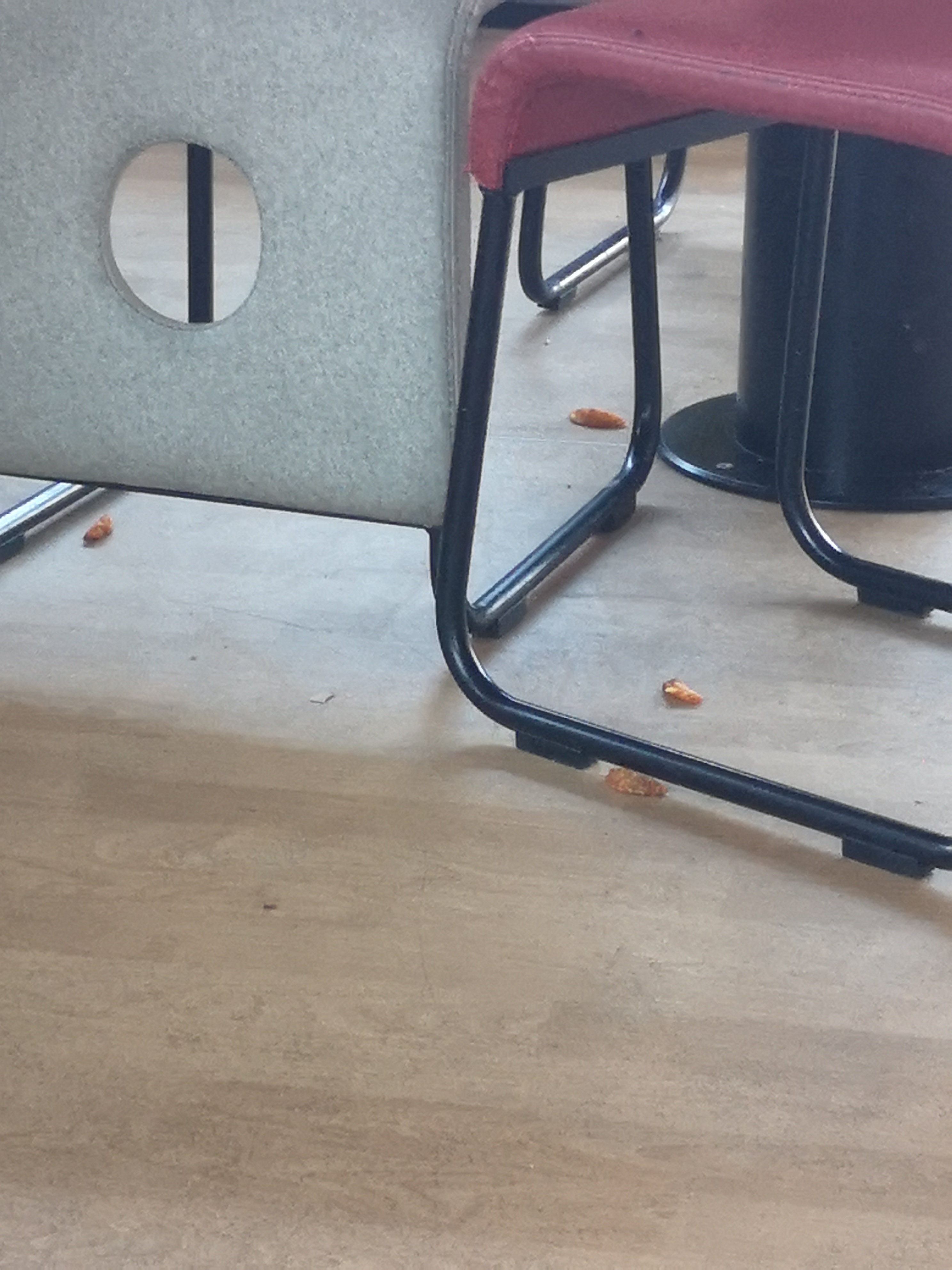 Dégoûtant Tables sales Sol sale Glace éclatée dans la stucture de jeux Frites tombées par terre 4 serveuses sont passées à côté sans meme y prêter attention