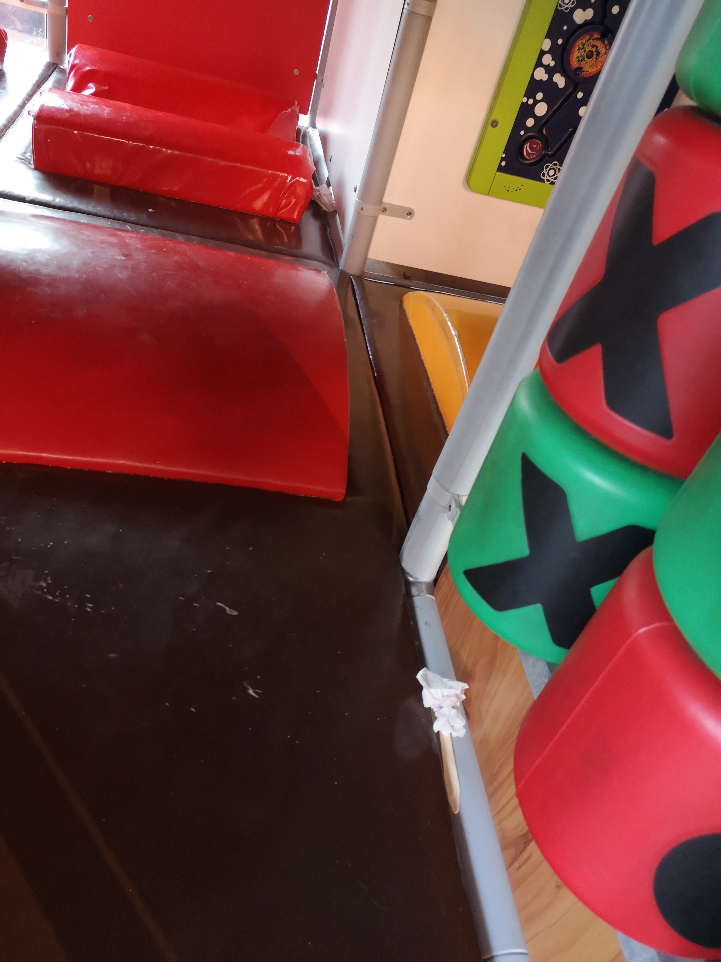 Odeur de vomi on nous dit que c'est le chauffage, qu'il faut choisir avoir chaud ou avoir froid. Pour avoir une odeur aussi mauvaise, c'est qu'il y a un sacré problème dans le chauffage limite l'hygiène. Tables dégoûtantes et surtout au niveau des jeux enfants et non respect des règles d'âge pour jouer. Castastrophique