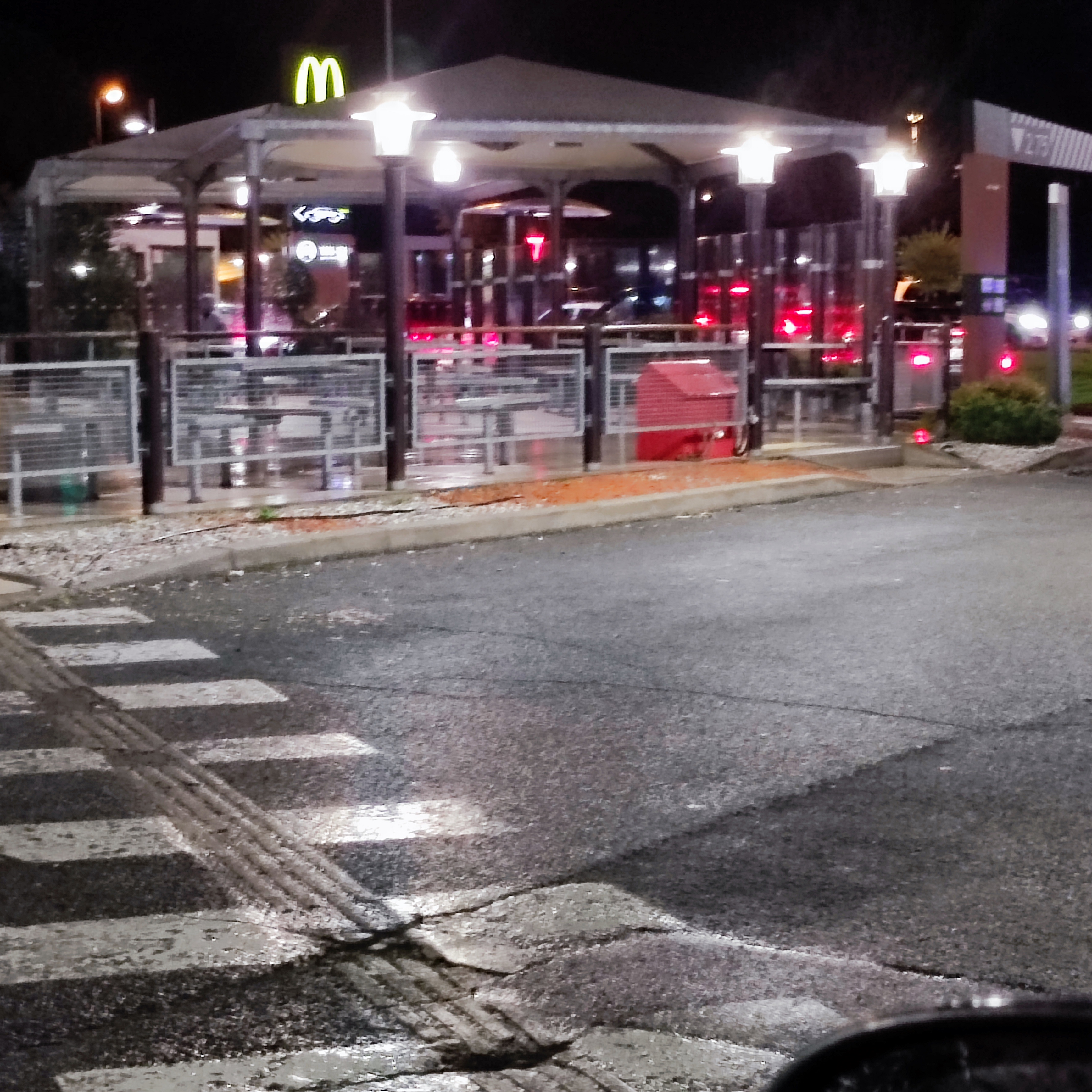 Scandaleux.. horaires affichés sur internet mensongés. Nous arrivons vers 23h30 sortant des 100 ans du stade chaban, nous avions regardé les horaires d'ouverture pour être sûrs de pouvoir manger. Restaurant fermé. Horaire de fermeture annoncé : 00h00. Drive : 2h30. Bref, on prend un drive. Précision importante, nous avons une personne handicapée avec nous. Nous nous garons sur le parking et nous rendons sur une table en extérieur (pour question confort par rapport à notre proche handicapé qui ne peut pas manger dans une voiture). Nous nous faisons sortir manu militari par deux personnes parce que la terrasse est fermée. Alors clairement nous n'avions pas l'intention de laisser quoique ce soit sur la table en terme de déchets ou autre, il ne faisait pas très chaud, et si nous avions su, nous nous serions organisés différemment. Respectez les horaires que vous affichez !! Nous n'y remettrons jamais les pieds. Je remercie vivement ces 2 personnes pour leur manque d'empathie.