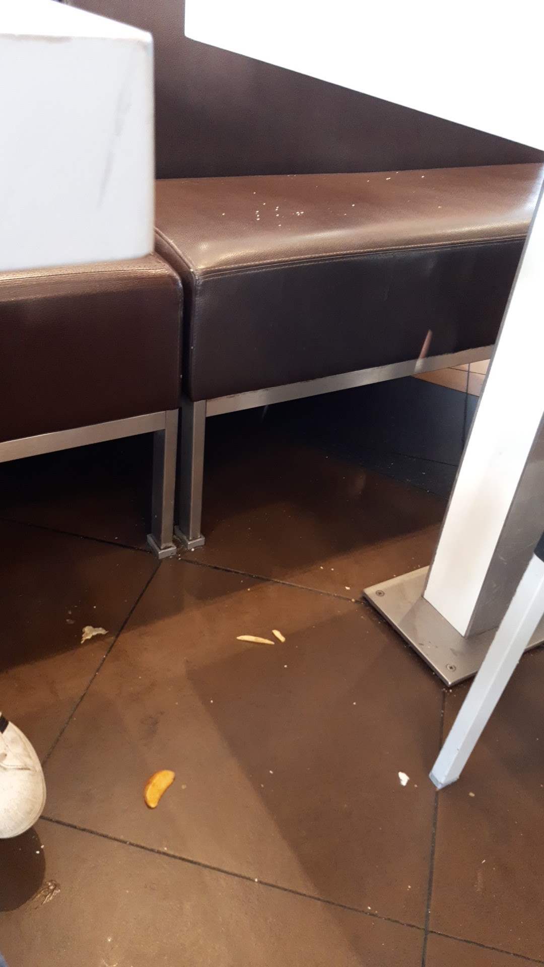 Attente interminable, sale et peu hygiénique. Mon fils de 2 ans glisse sur une feuille de papier à côté d’une poubelle plus que pleine (photo à l’appui) et s’abîme le genou face à un membre du personnel qui ne réagit pas. (Je rappelle que l’hygiène et de la responsabilité du restaurant cf Arrêt McDonald sur la responsabilité). J’espère que cet avis aura un impact sur l’équipe de management ou permettra une visite de la DGCCRF (hygiène et non respect des règles). À éviter absolument !!