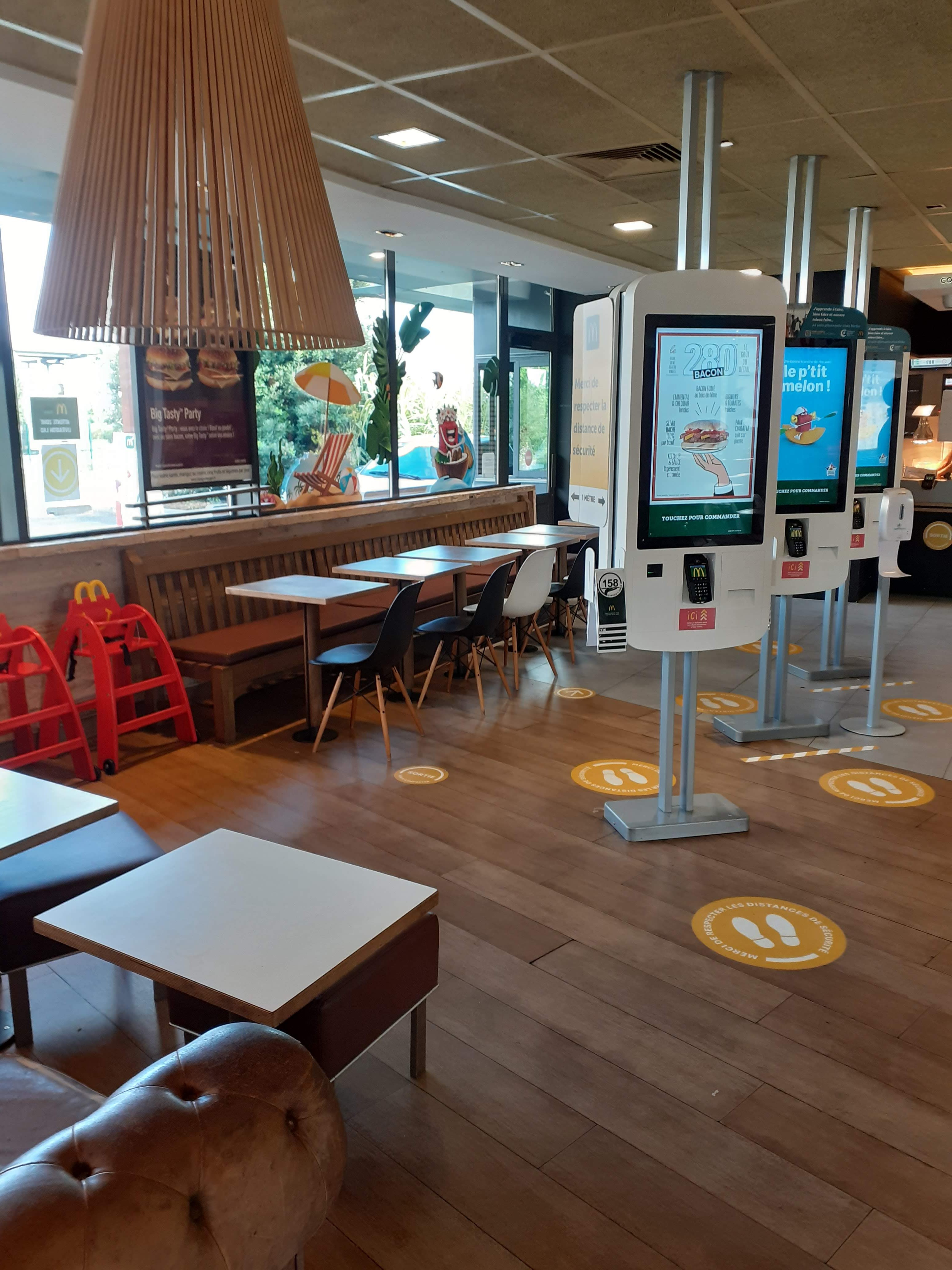 Deco accueillante. Pas trop de monde le week-end, et la biere est disponible sur les bornes de commandes, contrairement aux autre McDo autour de Bordeaux. Je ne comprend pas pourquoi on nous demande de porter le masque alors que ce n'est plus obligatoire depuis le 1er octobre.