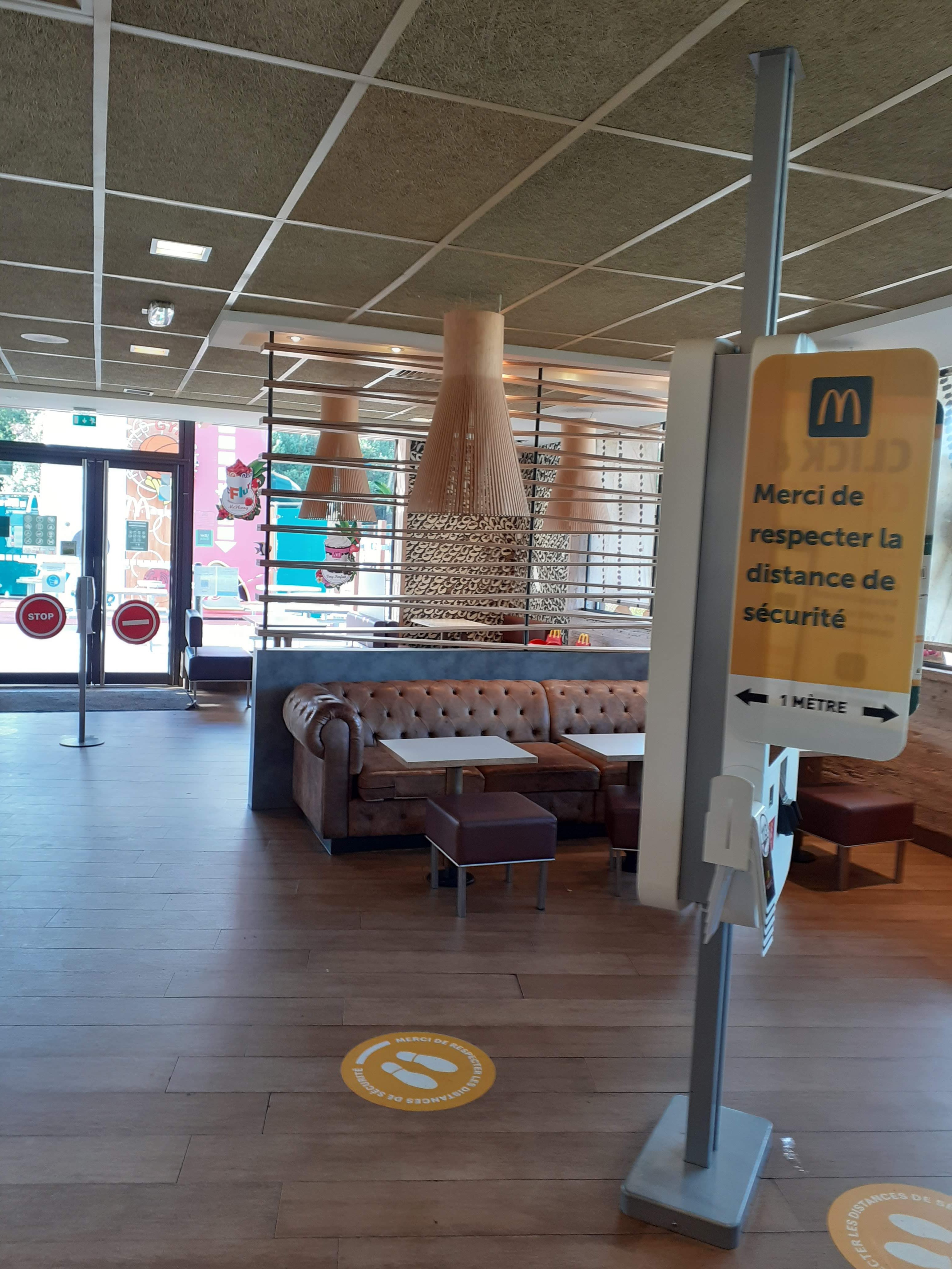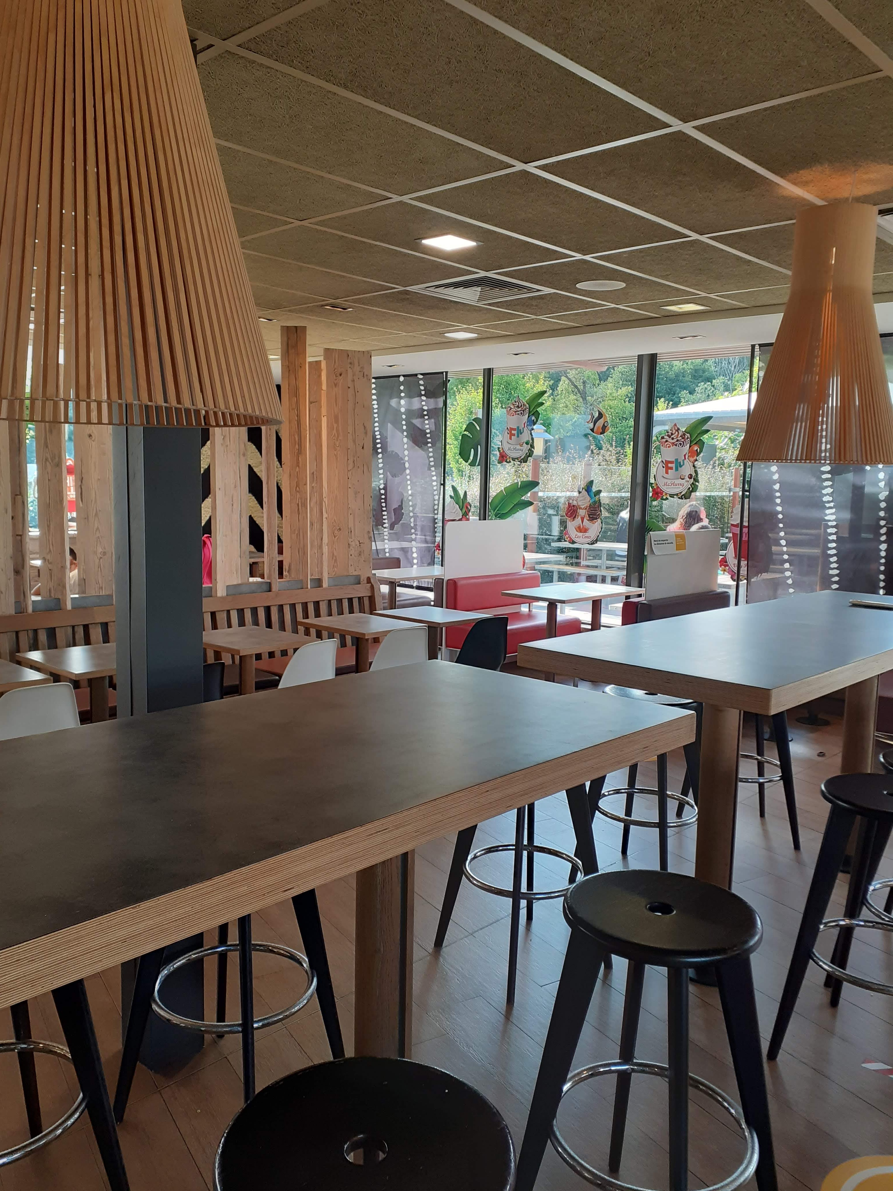 Mc Donald très bien décoré et agencé, bois, canapé en cuir. Personnel très sympathique. Nous sommes venu avec notre petit chien qui en principe n'était pas accepté mais au vu de la chaleur dehors, la responsable a accepté qu'elle rentre dans le restaurant.